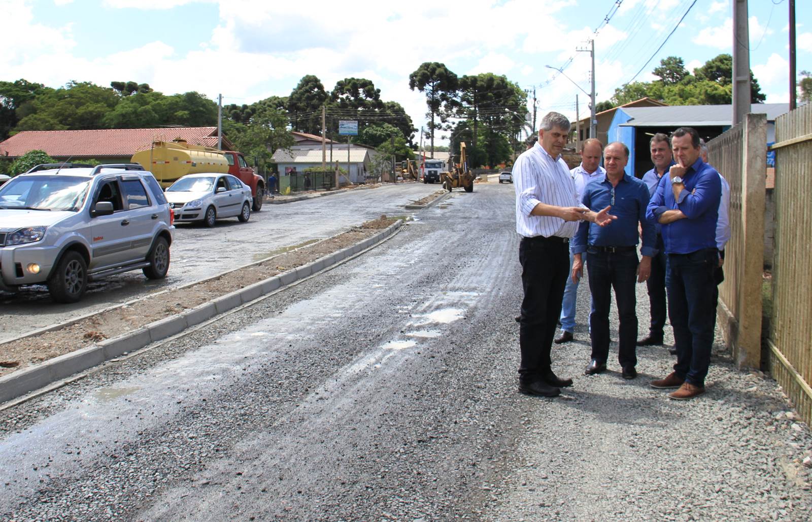 SEXTA-FEIRA – Na sexta-feira, 24, o secretário de Estado da SEDU esteve nos municípios de Itaperuçu, Almirante Tamandaré e Campo Largo, onde visitou obras e entregou editais para licitação e homologação de obras que beneficiam a população. Em Itaperuçu, Ortega entregou dois editais ao prefeito Hélio Guimarães para licitações de obras. Um, no valor de R$ 1.320.589,18, para a pavimentação de uma área de 6.863 m2, com 2.888 m2 de calçadas e demais serviços necessários em três ruas daquele município. O valor é oriundo do Programa de Financiamento aos Municípios (SFM).
