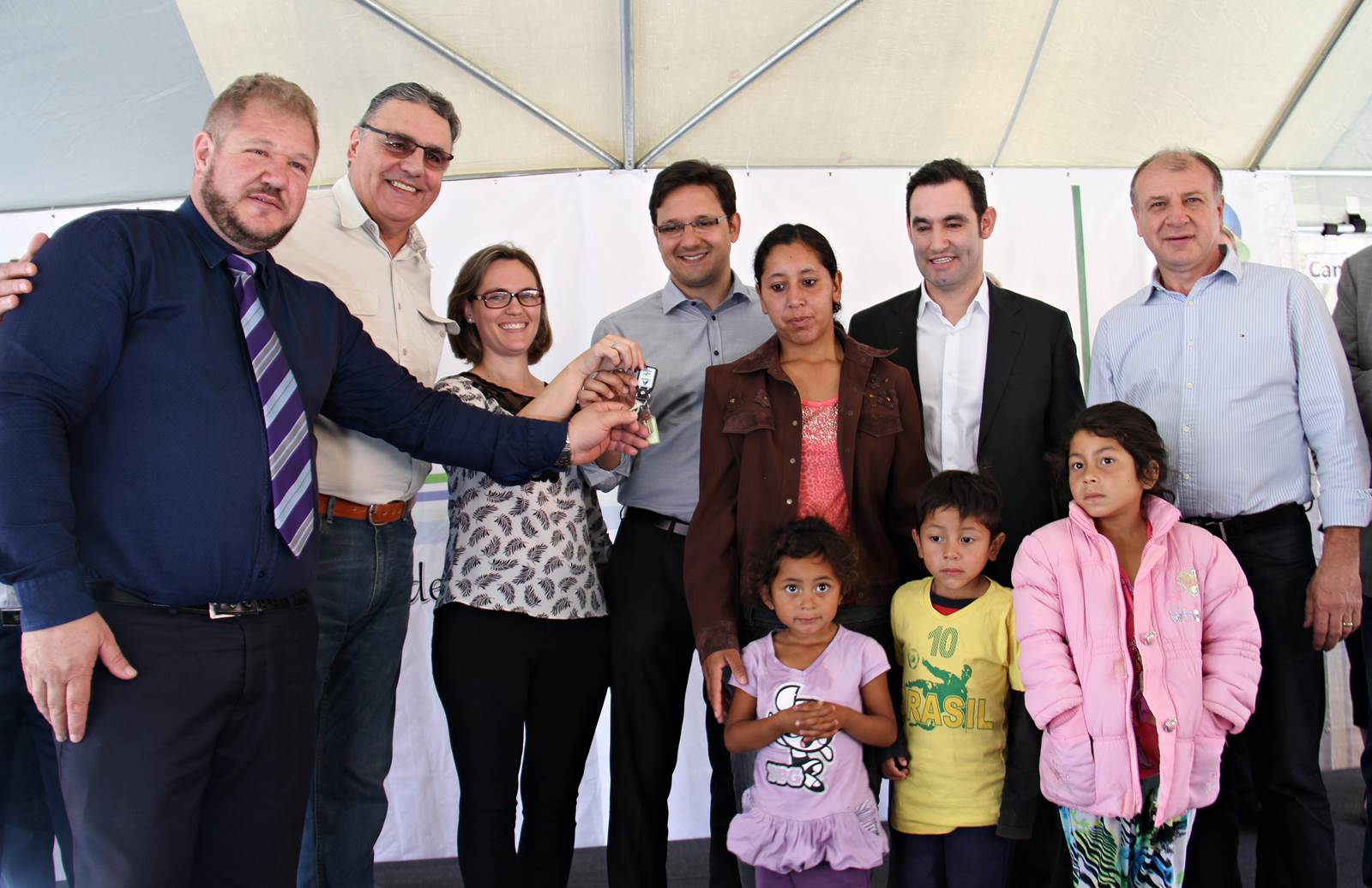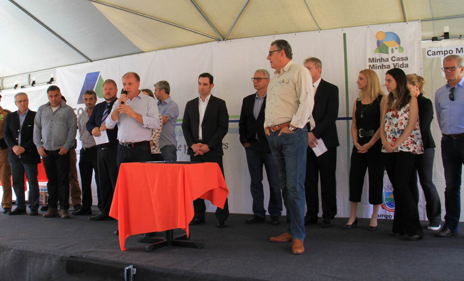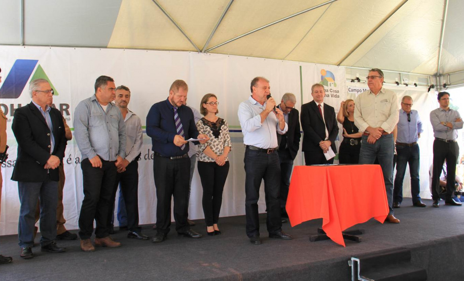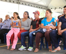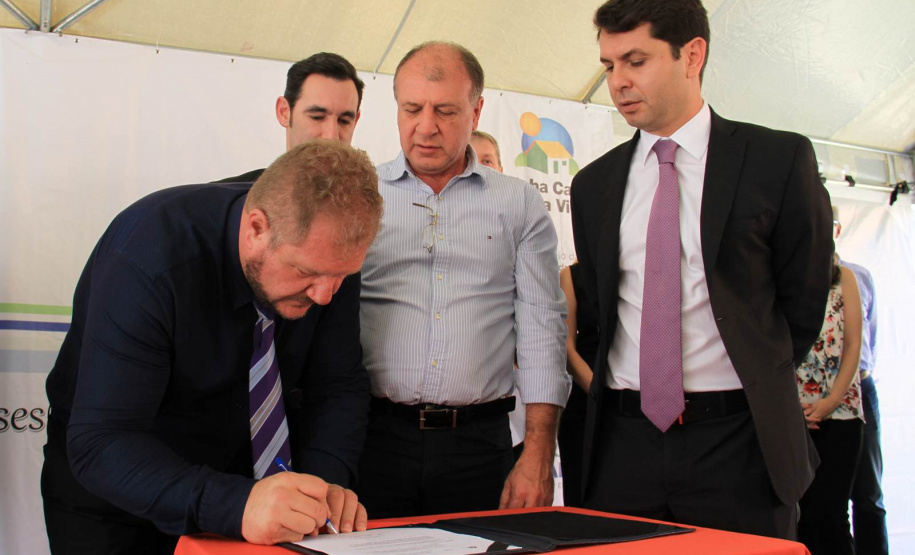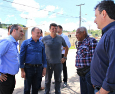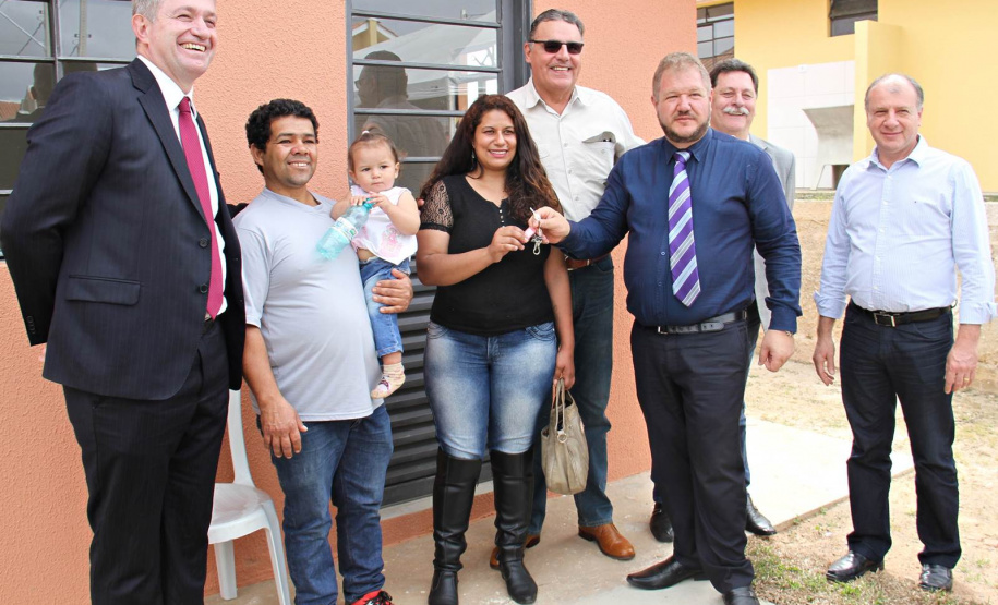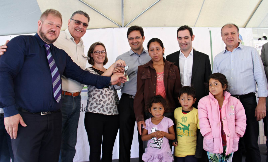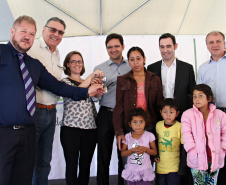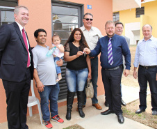 NOVAS MORADIAS - Ainda nesta ocasião, o prefeito também conseguiu entregar aos moradores do Jardim Águas Claras, na Rua José Muzniski, no Distrito Samambaia, as chaves de 74 casas, do Programa da Companhia de Habitação do Paraná (Cohapar). As 74 famílias viviam em área de risco. Com o recebimento das chaves das mãos do presidente da Cohapar, Abelardo Lupion, as pessoas passam a morar em um local mais seguro e com melhor infraestrutura.