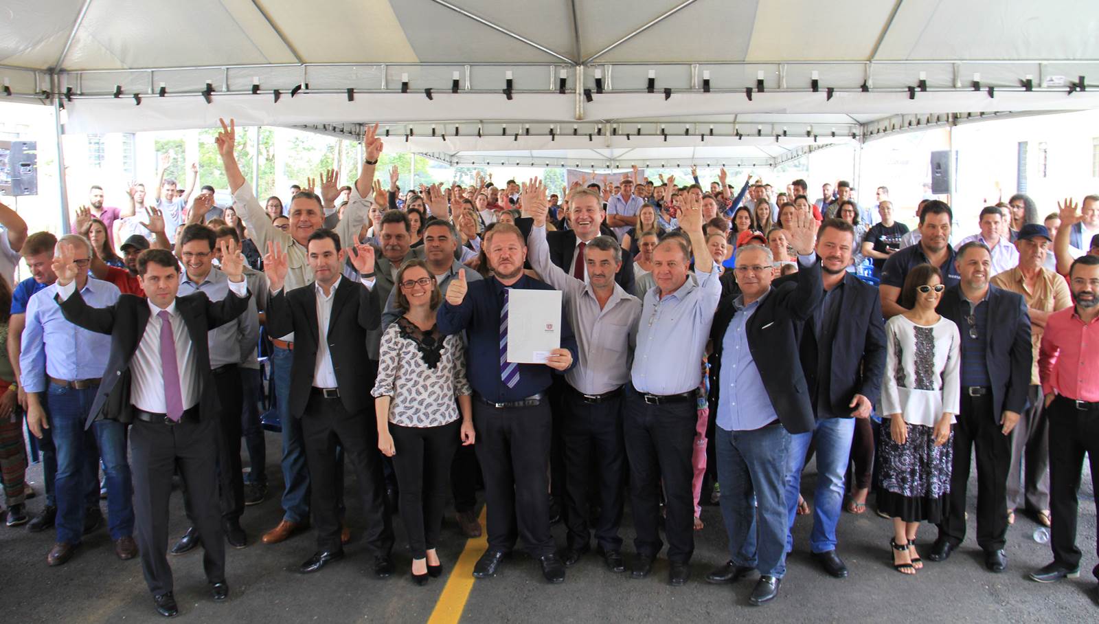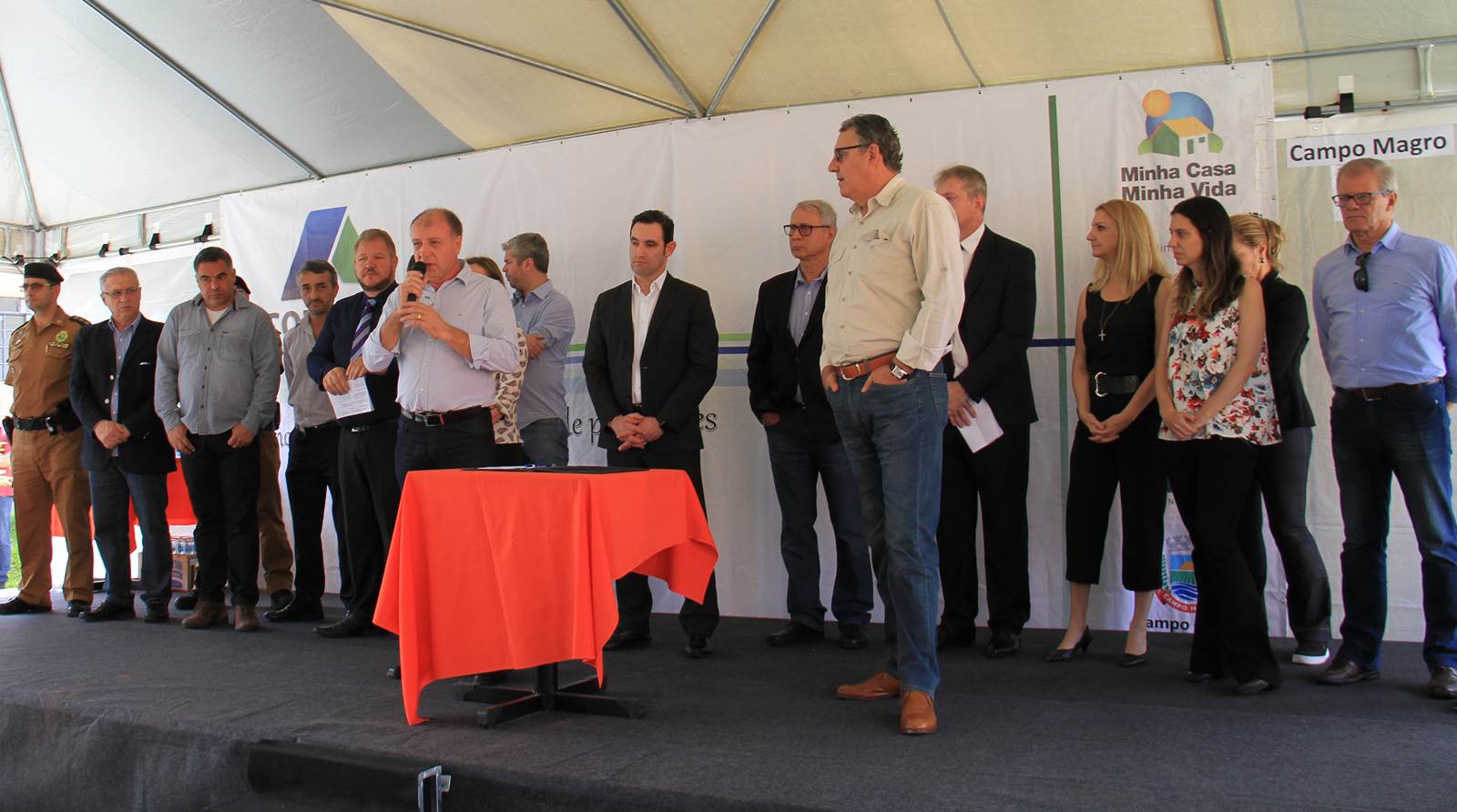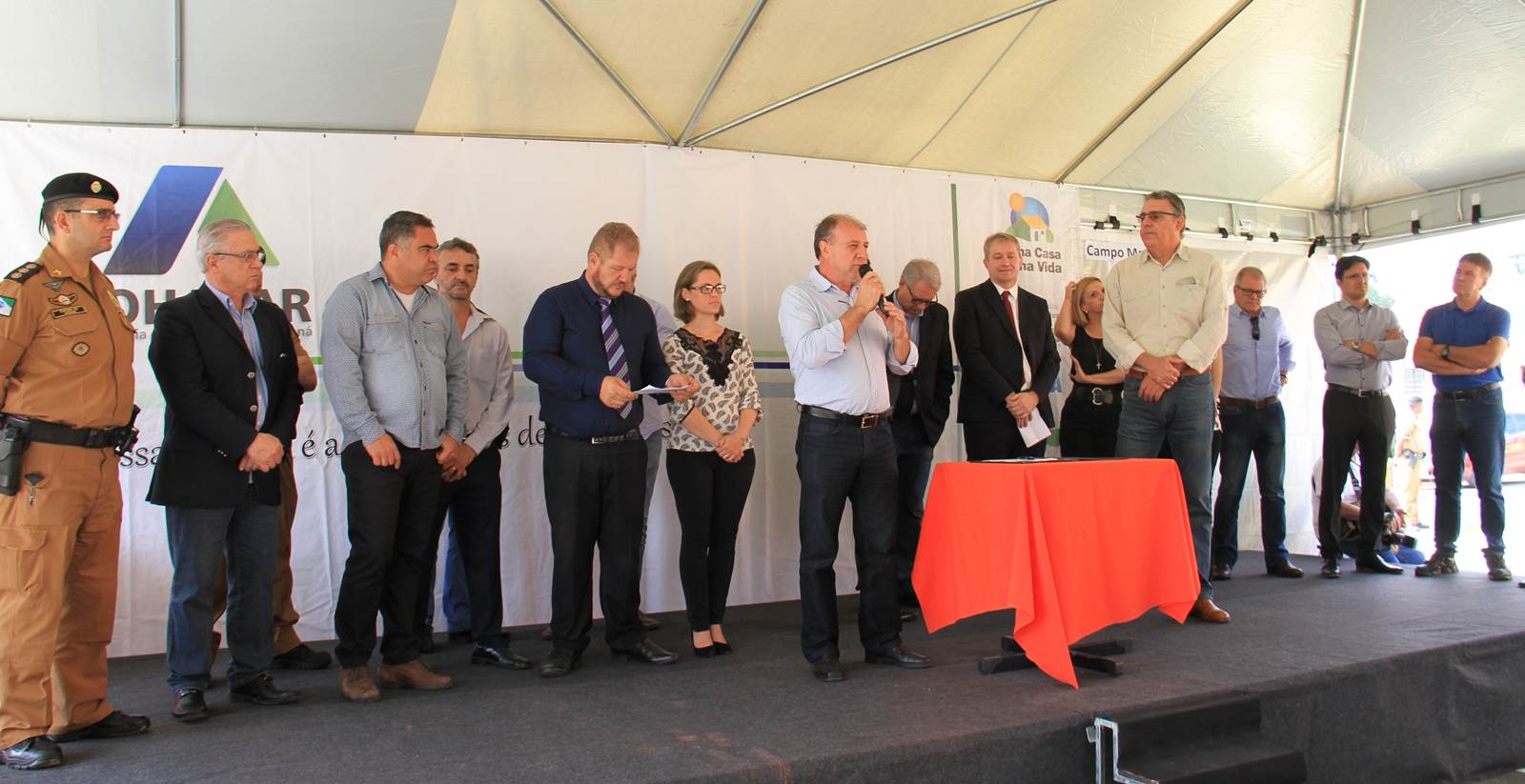 NOVAS MORADIAS - Ainda nesta ocasião, o prefeito também conseguiu entregar aos moradores do Jardim Águas Claras, na Rua José Muzniski, no Distrito Samambaia, as chaves de 74 casas, do Programa da Companhia de Habitação do Paraná (Cohapar). As 74 famílias viviam em área de risco. Com o recebimento das chaves das mãos do presidente da Cohapar, Abelardo Lupion, as pessoas passam a morar em um local mais seguro e com melhor infraestrutura.