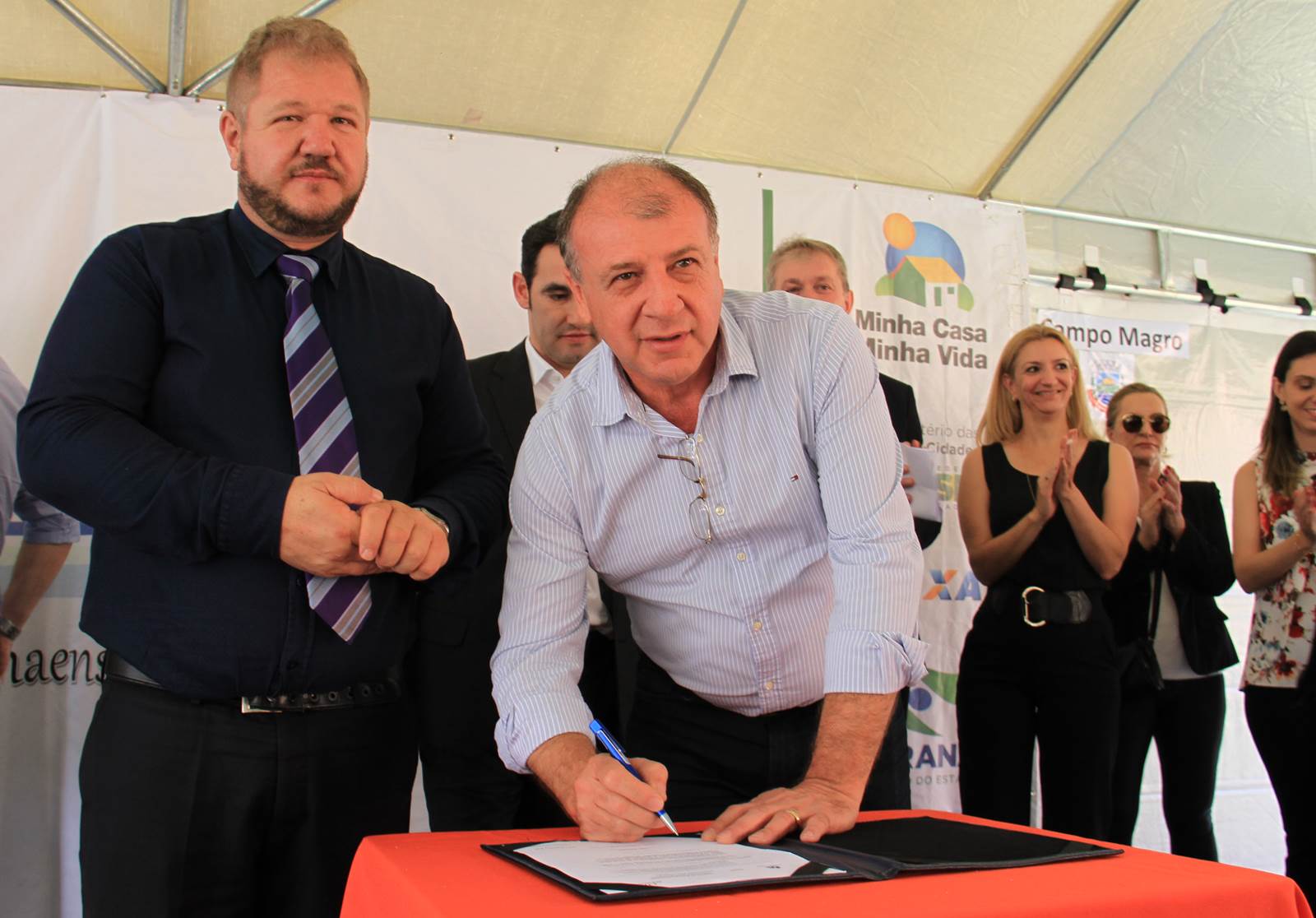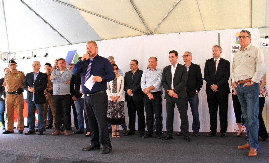 Além de Ortega e de Lupion, também estiveram com Casagrande o superintendente da Caixa Econômica Federal, Renato Scalabrin; a secretária Municipal de Ação Social, Giovana Casagrande; o vice-prefeito, Osmar José Leonardi; os deputados estaduais Alexandre Guimarães e Alexandre Curi; os diretores da Cohapar Nelson Justus e Roberto Erzinger; o diretor-presidente da construtora Borguesan, Braulino Borguesan; gerentes da Caixa Econômica, vereadores e outras lideranças daquele município.