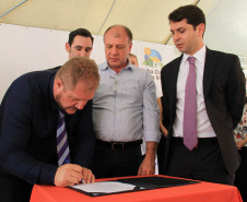 O secretário do Desenvolvimento Urbano (SEDU), João Carlos Ortega, terminou e iniciou a semana em trabalhos externos. Nesta terça-feira, 28, no município de Campo Magro, na Região Metropolitana de Curitiba (RMC), Ortega entregou, ao prefeito Cláudio Casagrande, o edital de licitação no valor de R$ 3.182.100,00 , pelo Programa de Transferência Voluntária da SEDU, com uma contrapartida municipal de R$ 282.100,00, para a compra equipamentos rodoviários. “Além de o prefeito não necessitar devolver aos cofres públicos o valor maior, pois é a fundo perdido, ele vai poder renovar o seu parque de máquinas e dar um grande impulso ao desenvolvimento, pelas obras que a população demanda para serem feitas em Campo Magro”, destacou Ortega.