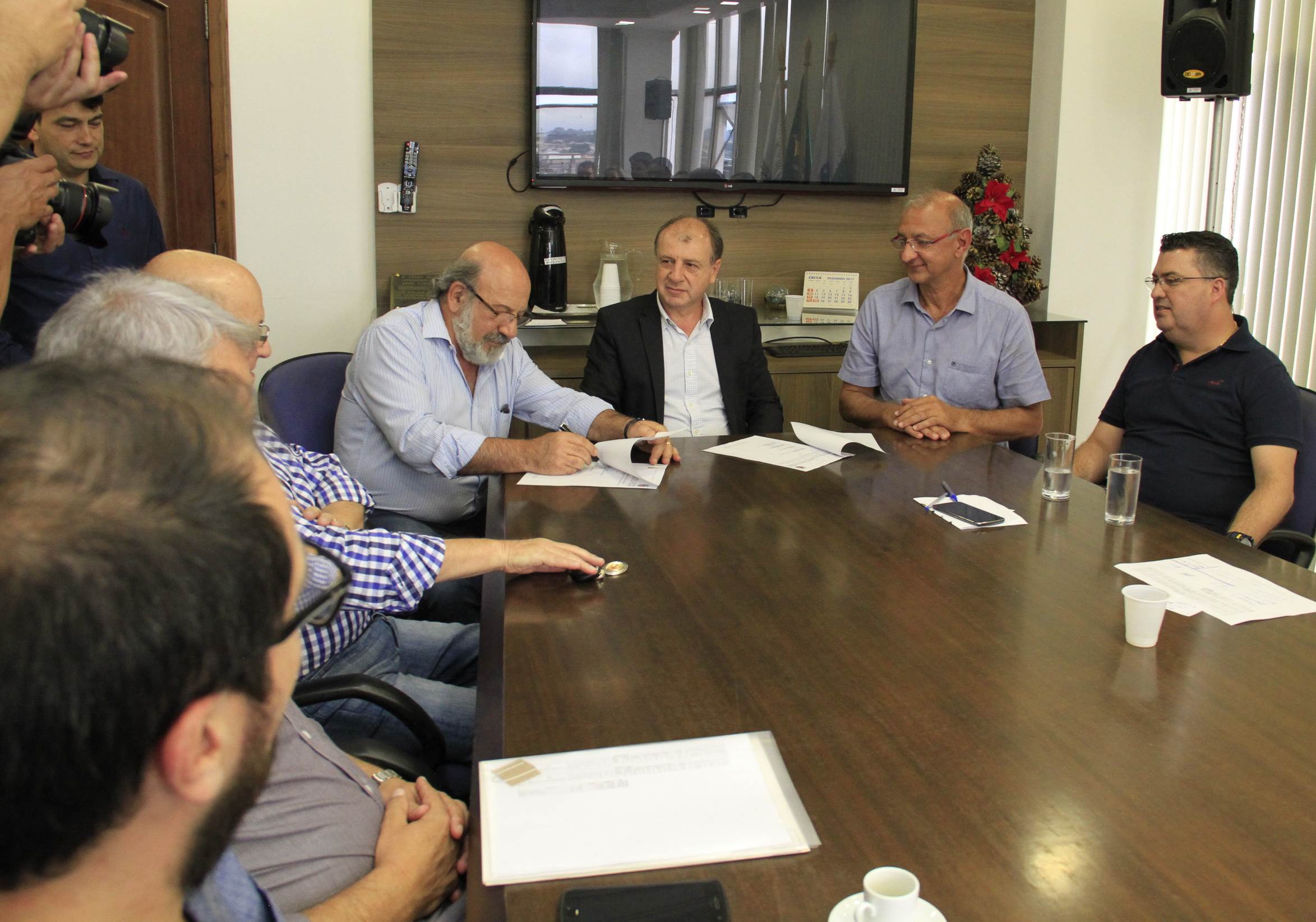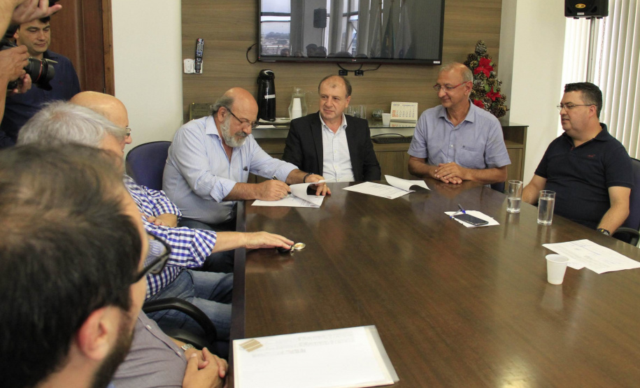 O secretário do Desenvolvimento Urbano (SEDU), João Carlos Ortega, e o diretor –presidente da Coordenação da Região Metropolitana de Curitiba (COMEC), Omar Akel, assinaram com o prefeito de Araucária, Hissam Hussein Dehaini, e o diretor-presidente da Companhia Municipal de Transporte/liquidante, Luciano Stall, a renovação da integração do transporte coletivo entre aquele município e a Região Metropolitana de Curitiba. “Esta é mais uma parceria perfeita e harmônica entre o Governo do Estado e a Prefeitura local”, destacou Ortega, durante assinatura do documento na tarde desta quinta-feira, 21, no Salão Nobre da Prefeitura de Araucária.