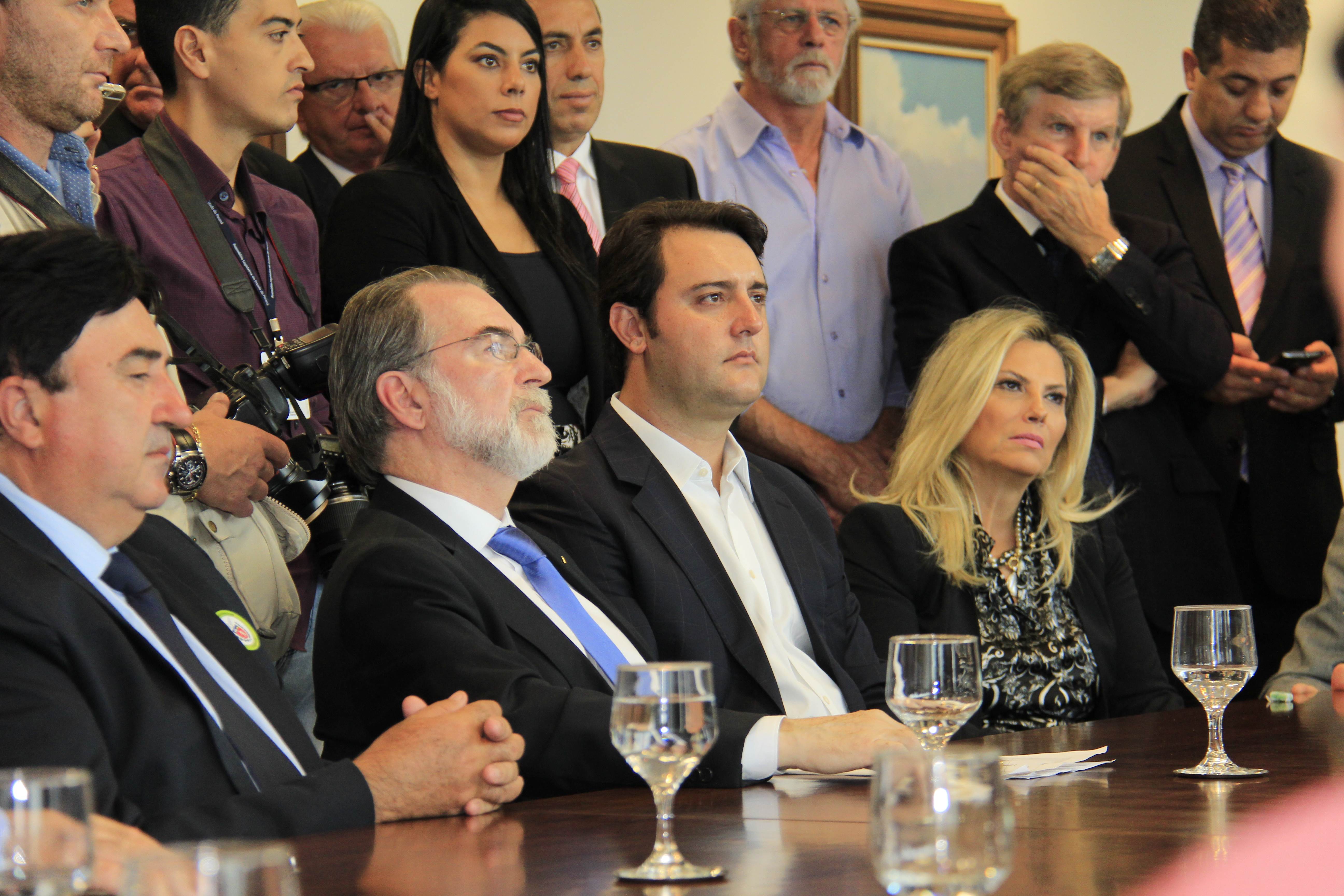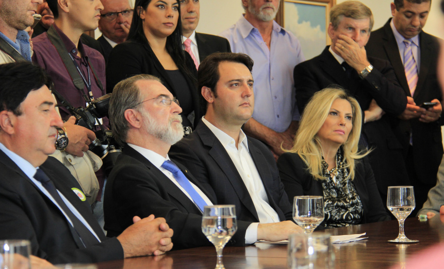 PRESENÇAS – Participaram da solenidade a vice-governadora Cida Borghetti; o secretário-chefe da Casa Civil, Valdir Rossoni; o secretário da Justiça, Cidadania e Direitos Humanos, Artagão Junior; o presidente da Assembleia Legislativa do Paraná, Ademar Traiano; os deputados federais Luiz Carlos Hauly, Ricardo Barros e Nelson Padovani; os deputados estaduais Luiz Claudio Romanelli, Guto Silva, Cobra Repórter, Márcio Nunes, Edgar Bueno, Alexandre Curi, Alexandre Guimarães, Evandro Junior, Tião Medeiros, Jonas Guimarães, Fernando Scanavaca, Cláudia Pereira, Élio Rush, Bernardo Carli, Cristina Silvestri, Nelson Justus, Paulo Litro e Vilmar Recheimback.