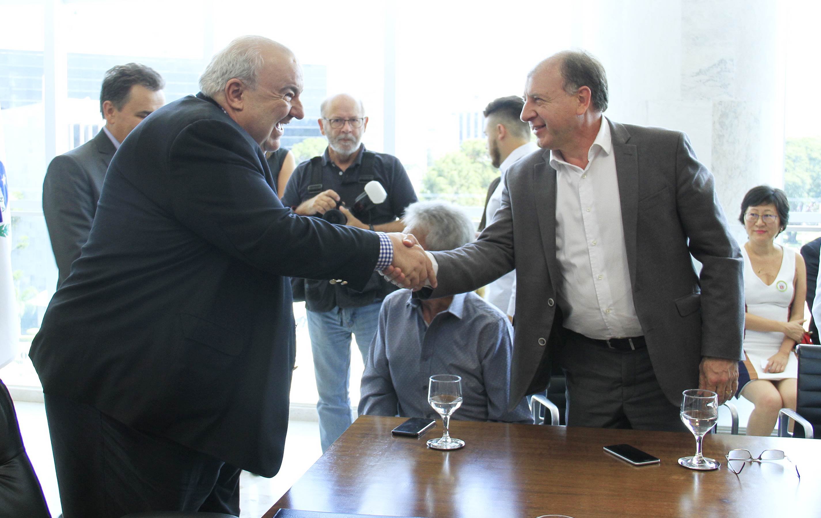 O prefeito de Fazenda Rio Grande e presidente da Associação dos Municípios da Região Metropolitana (ASSOMEC), Márcio Wosniak, e o prefeito de Piraquara, Marcos Tesseroli, ressaltaram a importância da gestão compartilhada.