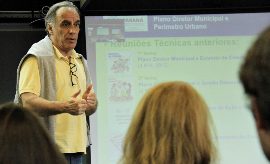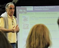 Carlos Storer, o economista Jerônimo Meira e o arquiteto urbanista, Fernando Caetano – todos do Paranacidade – apresentaram os temas da reunião. Eles abordaram conceitos urbanísticos sob o foco da legislação sobre situações consolidadas, específicas e novas; os critérios para a delimitação do Perímetro Urbano; a questão do crescimento demográfico e econômico; a densidade e o percentual de ocupação; o déficit habitacional, entre outros fatores relevantes, como a própria dispersão urbana. “São fatores que visam a otimização e a efetividade dos investimentos públicos em infraestrutura, equipamentos e serviços urbanos, quando bem planejados em um único espaço, não disperso. O resultado é um bom atendimento público à população, com mais economia à Prefeitura”, explicou Caetano.