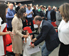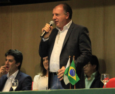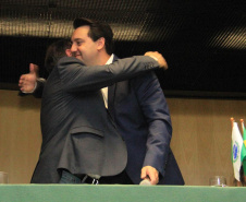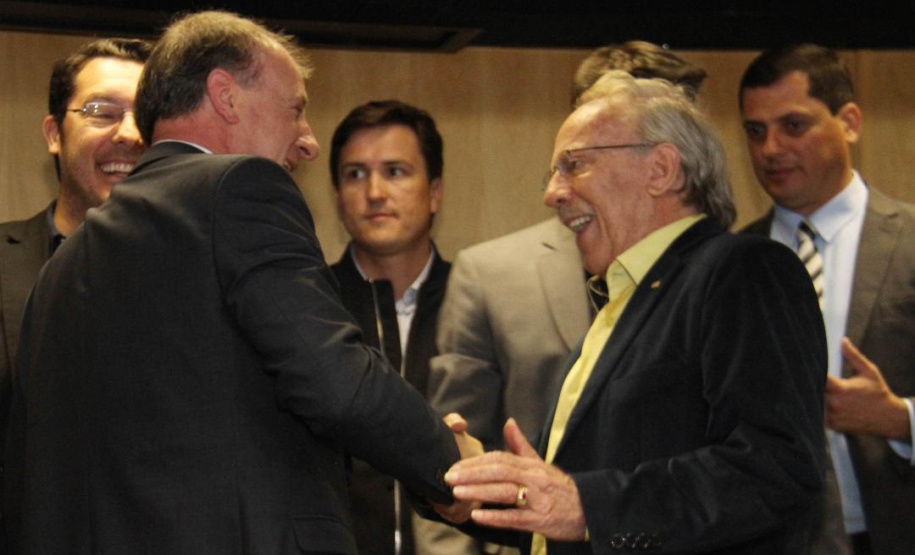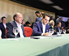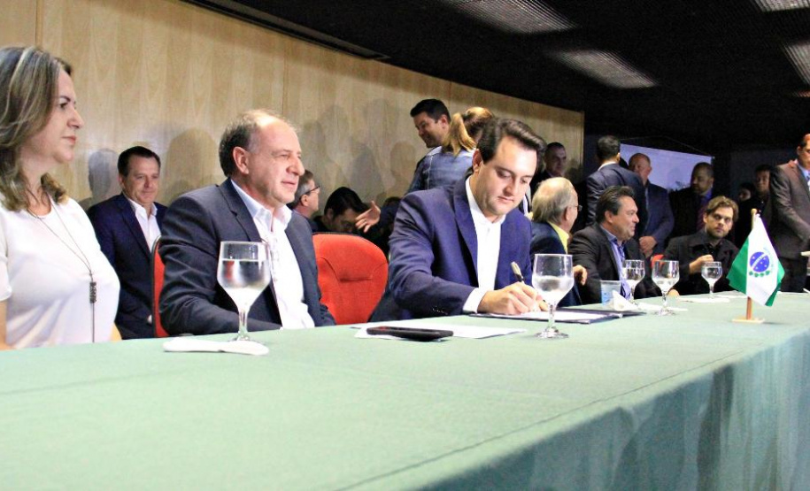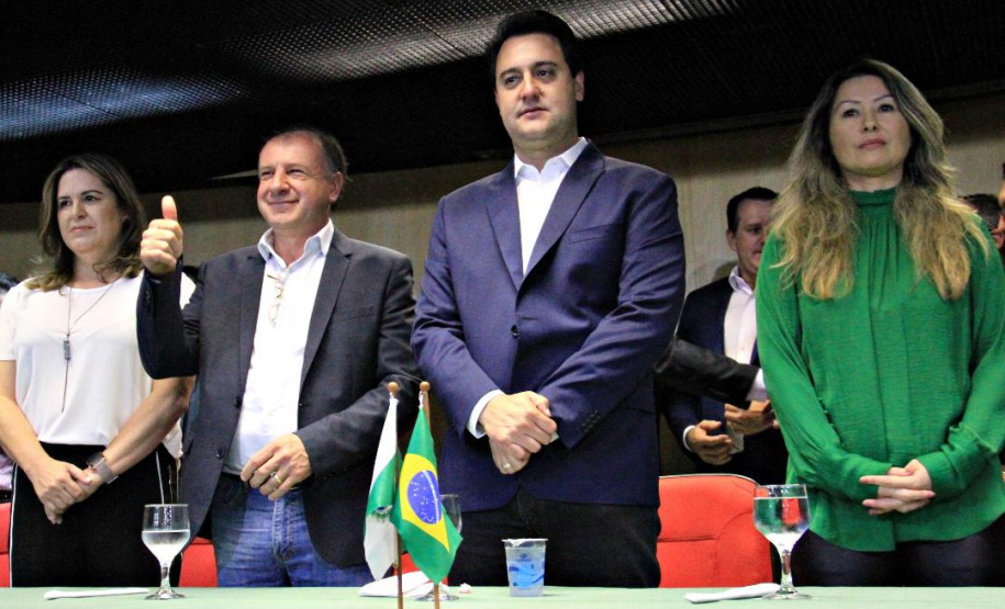 PRESENÇAS – Participaram da solenidade os secretários da Casa Civil, Guto Silva; da Agricultura e Abastecimento, Norberto Ortigara; do Desenvolvimento Sustentável e Turismo, Marcio Nunes; e do Planejamento, Valdemar Bernardo Jorge; o superintendente executivo do Paranacidade, Álvaro Cabrini Junior; os diretores-presidentes da COMEC, Gilson de Jesus dos Santos; e da Agepar, Ormar Akel; os presidentes da Sanepar, Claudio Stabile; da Agência de Fomento Paraná, Heraldo Neves; da Cohapar, Jorge Lange; e da Compagas, Rafael Lamastra Junior; o controlador-geral do Estado, advogado Raul Siqueira; e os deputados estaduais Nelson Justus; Goura; Luiz Felipe Guerra; Alexandre Curi; Anibelli Neto; Gilson de Souza e Soldado Adriano.