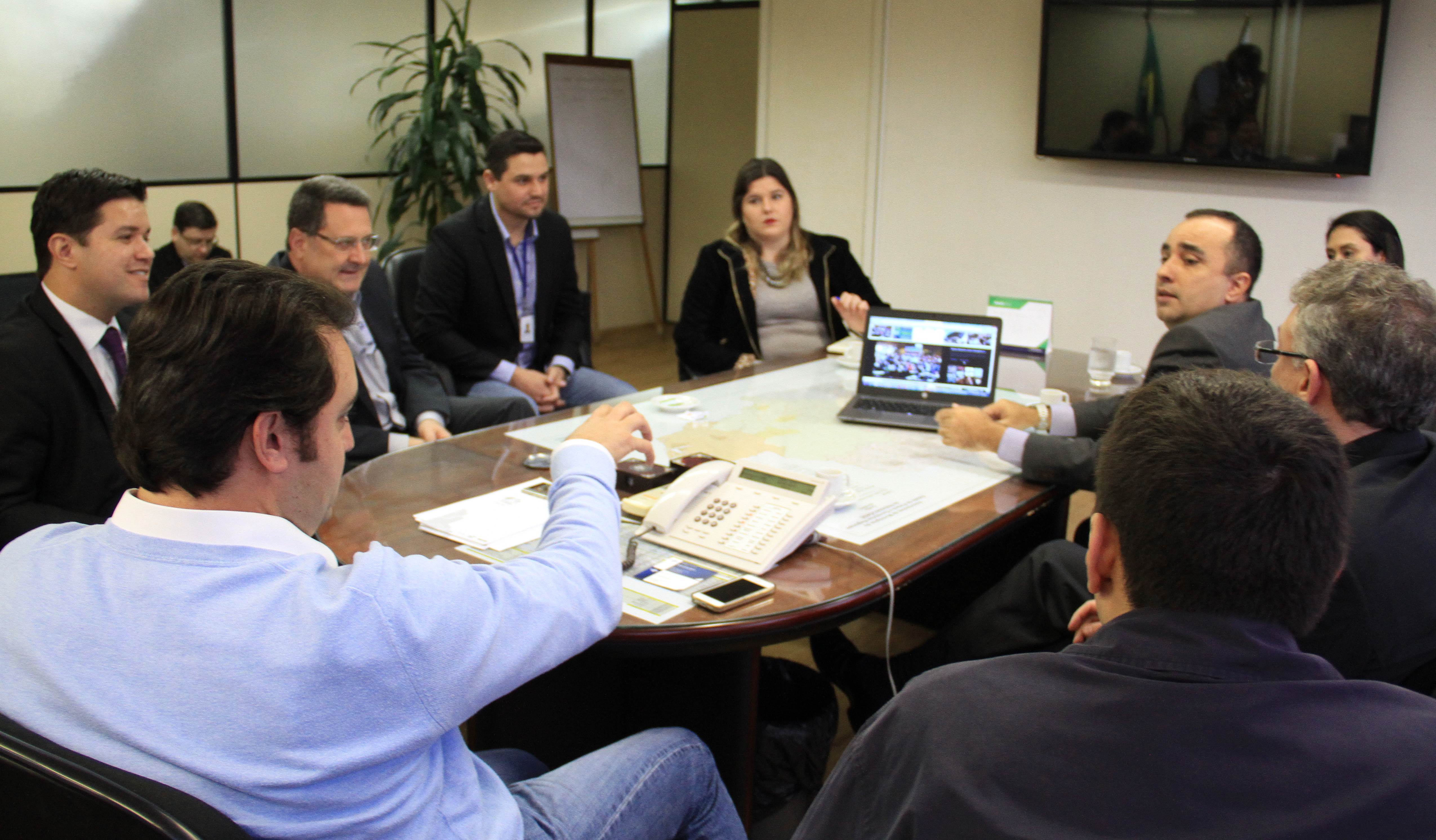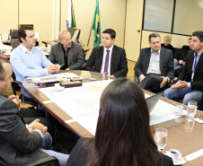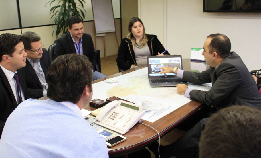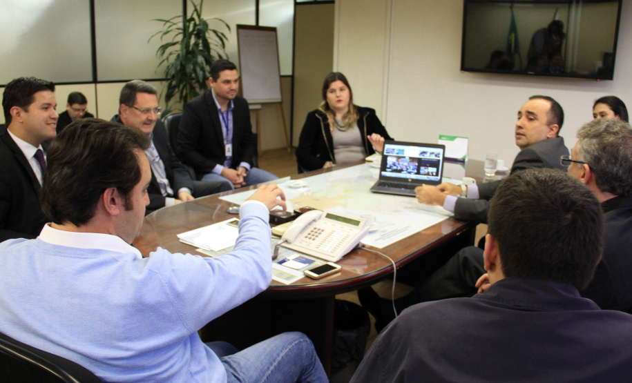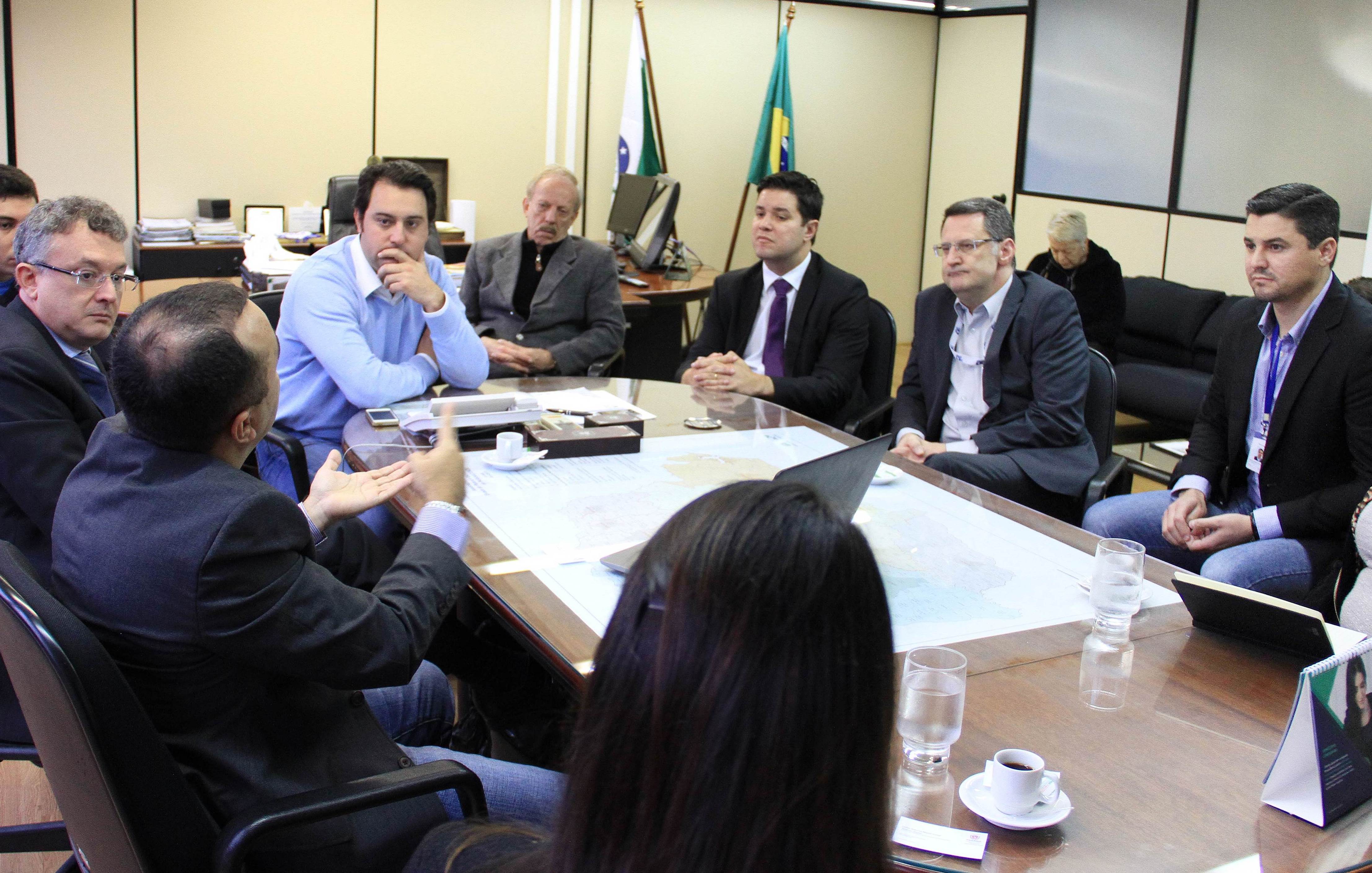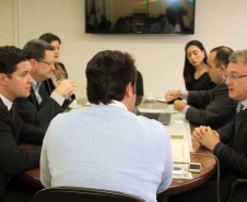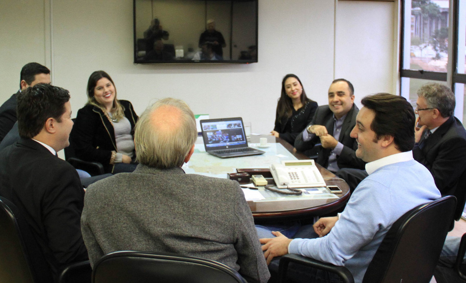 O secretário do Desenvolvimento Urbano, Ratinho Junior, recebeu nesta segunda-feira, 30, em seu gabinete na SEDU, o superintendente do SEBRAE/PR, Vitor Chioqueta, acompanhado do seu coordenador estadual de Projetos Startups, Rafael Gustavo Tortato; o chefe de gabinete da presidência da CELEPAR – Tecnologia de Informação e Comunicação do Paraná -, Mauro Sorgenfrei; e o deputado estadual Guto Silva. Na reunião, o grupo esboçou as primeiras linhas para a organização de um Hackathon. O evento, que deverá estar pronto para este ano, reunirá programadores, designers e outros profissionais ligados ao desenvolvimento de softwares que atendam a soluções de problemas específicos ou de projetos livres relacionados a cidades, que sejam inovadores e úteis à população e à administração pública. “A estratégia é proporcionar ferramentas que possam melhorar a gestão dos prefeitos dos 399 municípios do Paraná”, disse Ratinho Junior.