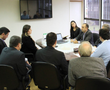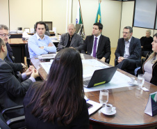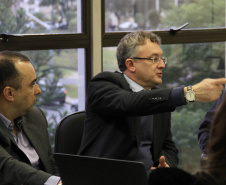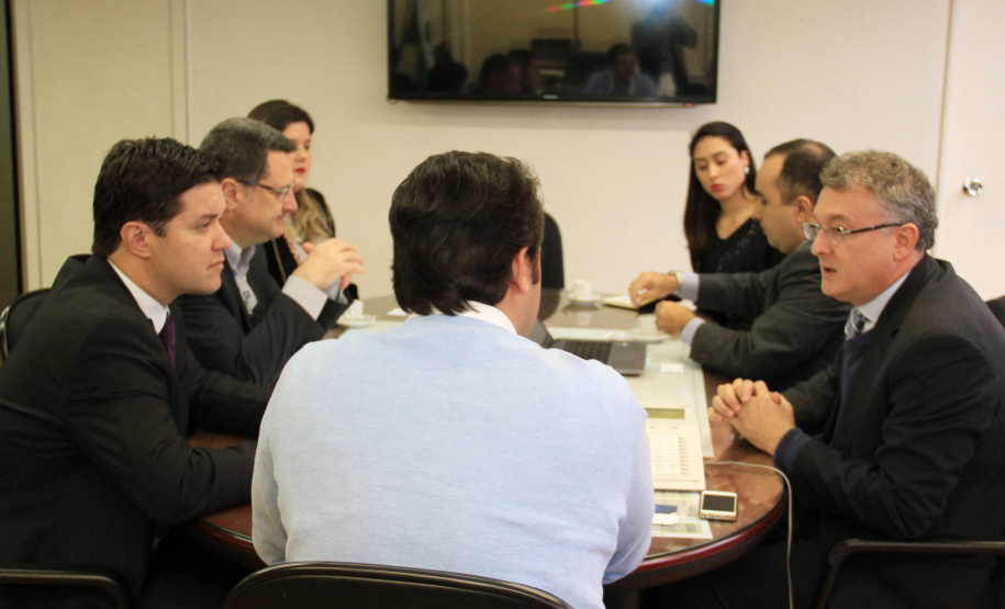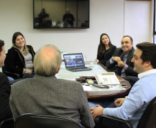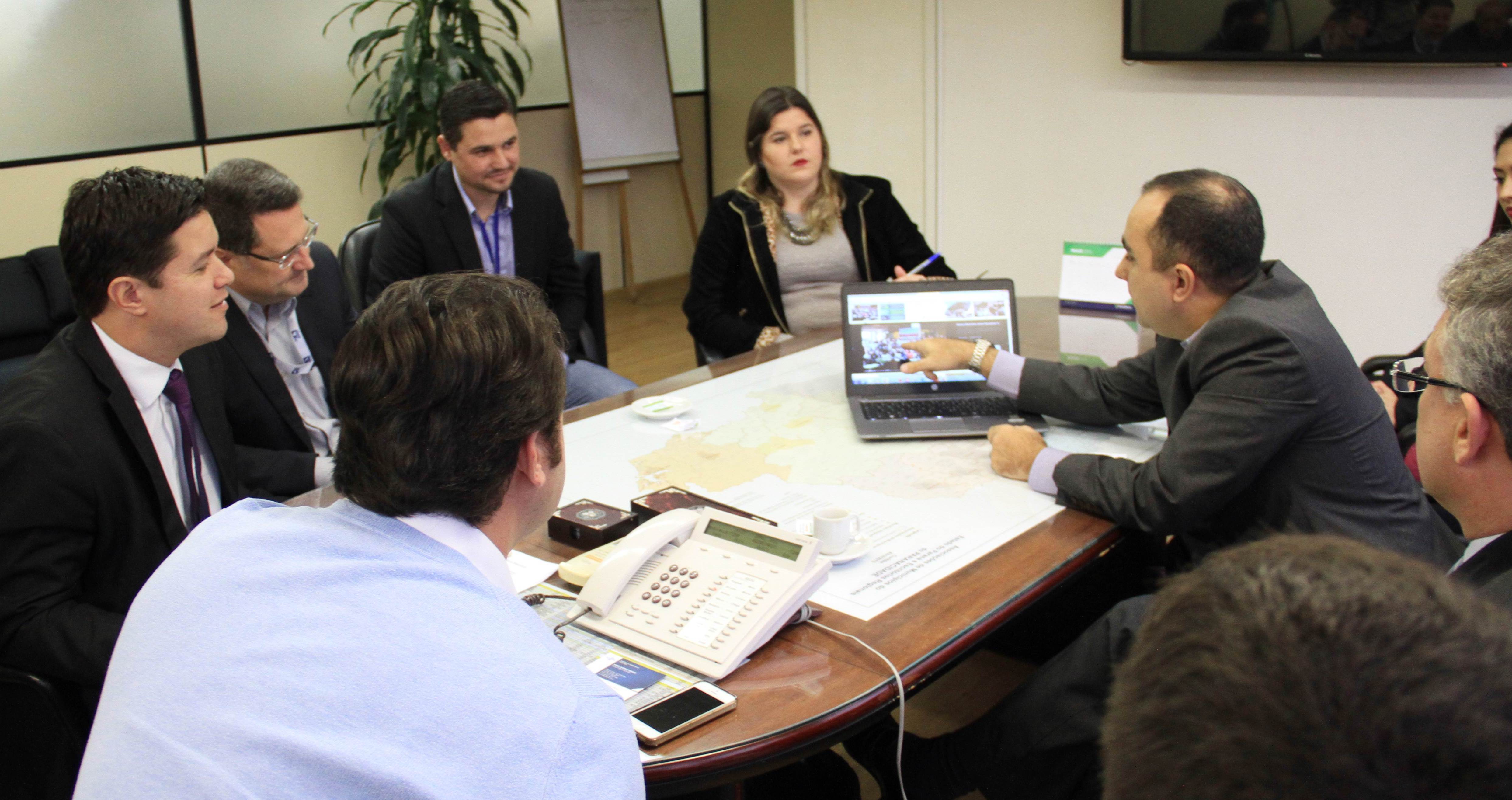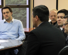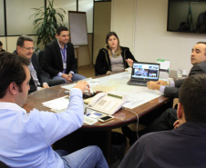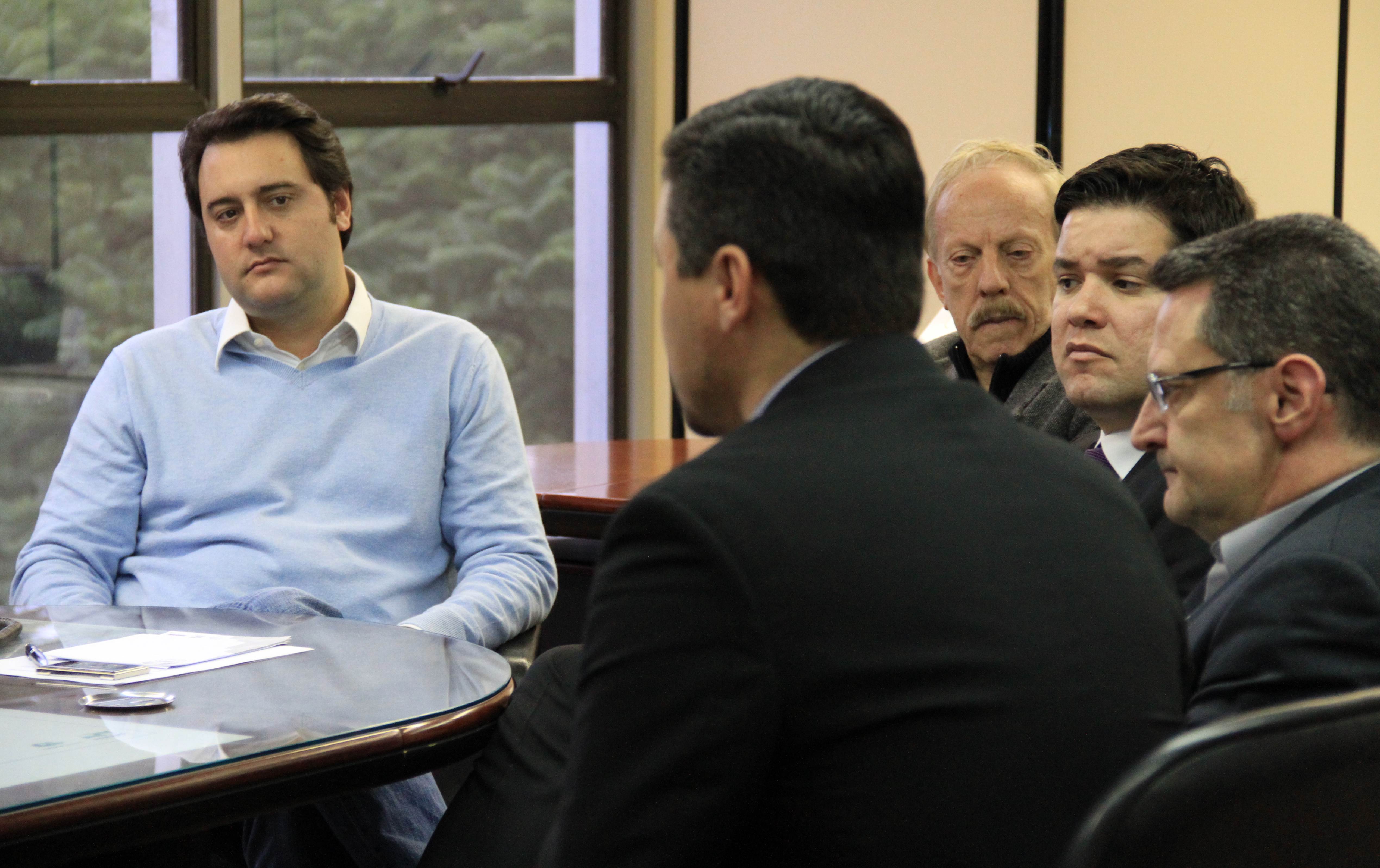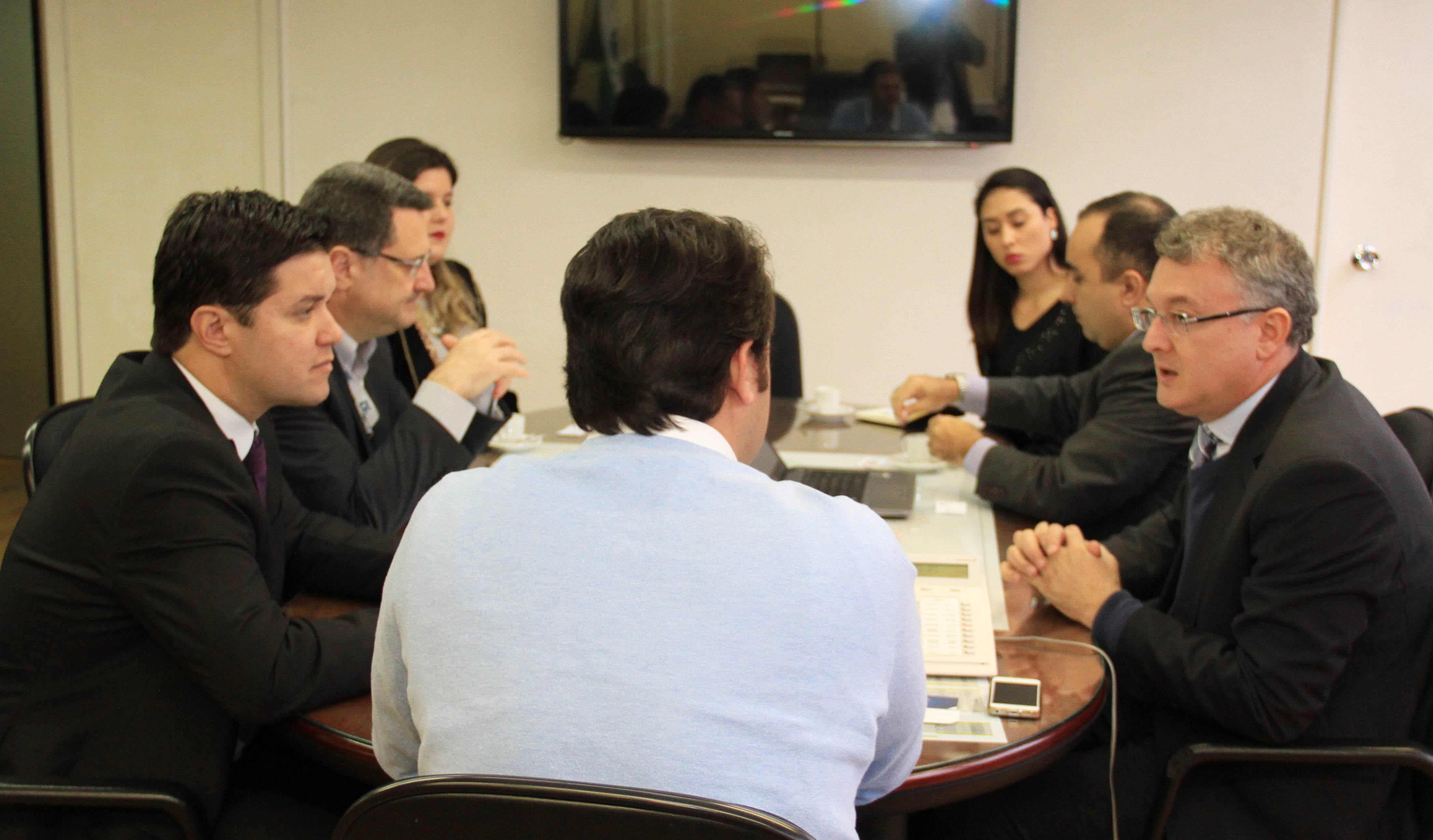 O secretário do Desenvolvimento Urbano, Ratinho Junior, recebeu nesta segunda-feira, 30, em seu gabinete na SEDU, o superintendente do SEBRAE/PR, Vitor Chioqueta, acompanhado do seu coordenador estadual de Projetos Startups, Rafael Gustavo Tortato; o chefe de gabinete da presidência da CELEPAR – Tecnologia de Informação e Comunicação do Paraná -, Mauro Sorgenfrei; e o deputado estadual Guto Silva. Na reunião, o grupo esboçou as primeiras linhas para a organização de um Hackathon. O evento, que deverá estar pronto para este ano, reunirá programadores, designers e outros profissionais ligados ao desenvolvimento de softwares que atendam a soluções de problemas específicos ou de projetos livres relacionados a cidades, que sejam inovadores e úteis à população e à administração pública. “A estratégia é proporcionar ferramentas que possam melhorar a gestão dos prefeitos dos 399 municípios do Paraná”, disse Ratinho Junior.