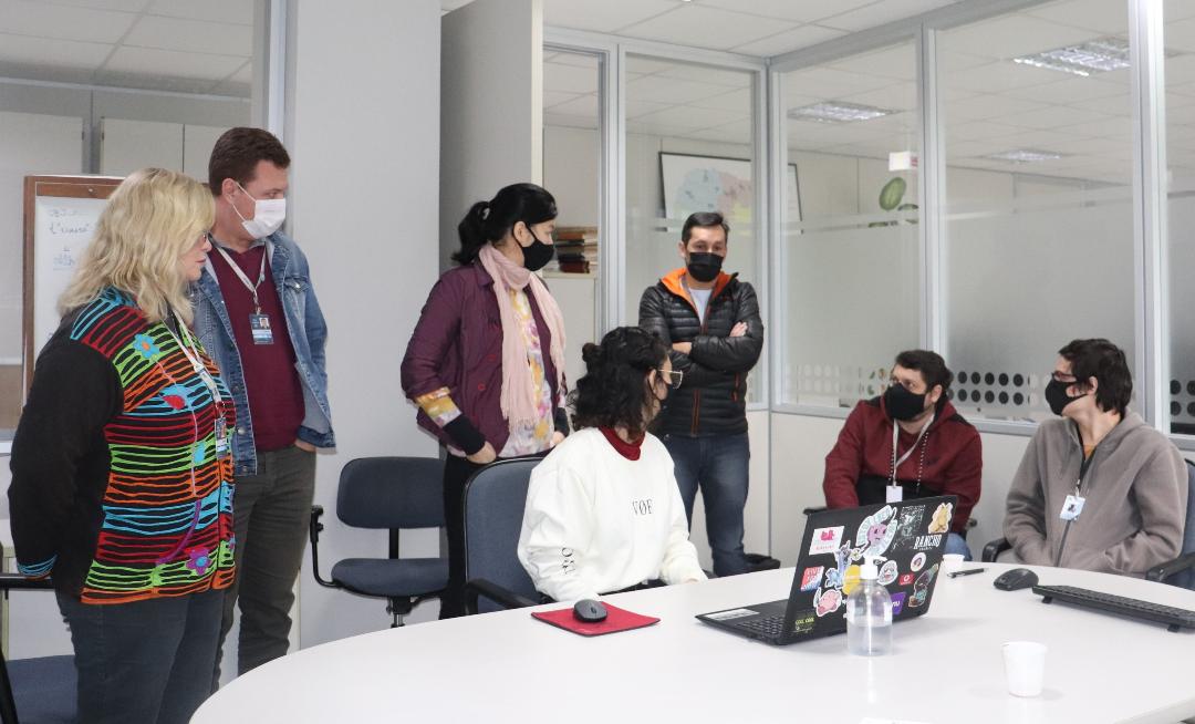 SOLUÇÕES - “É, sem dúvida, uma ferramenta que ajuda a resolver os problemas das cidades no Paraná”, destacou Liu. Já, o Projeto da UTFPR é uma parceria, com Modelo Hélice Tríplice, entre Governo, Universidades do País e Internacionais, e iniciativa privada. Liu e Kaori foram recebidas pela coordenadora de Projetos do Paranacidade, Virgínia Nalini, engenheira, com mestrado em Cartografia, e sua equipe. São os analistas de Desenvolvimento Municipal do Paranacidade: Evemar Wernick, Cristiano José Zaclikevicz, o assistente de Suporte Técnico Administrativo, Fabiano Coelho dos Santos, e o estagiário Guilherme Gonzatto..