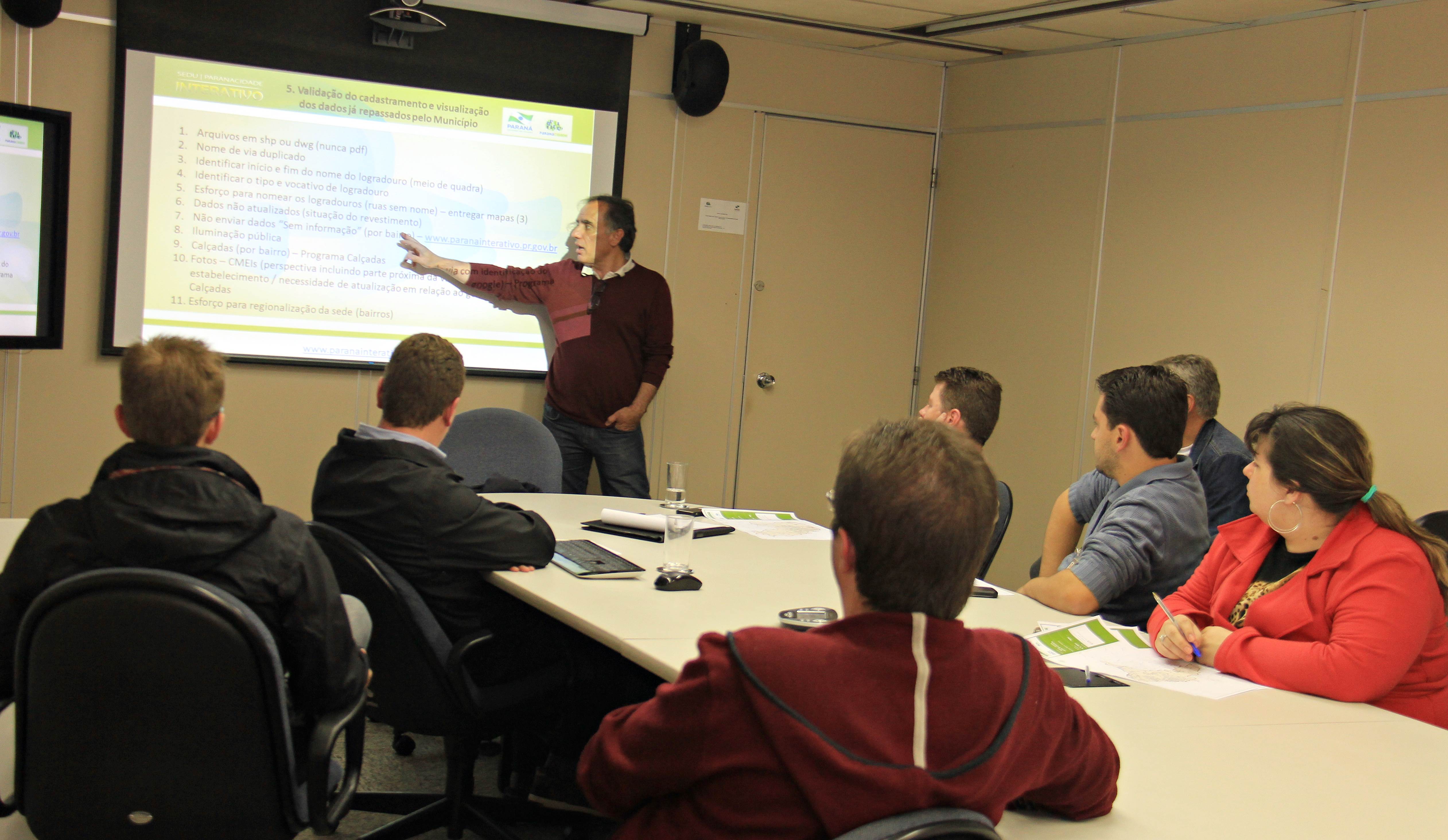 O desenvolvimento de ferramentas de georreferênciamento e a necessidade de agregar dados e conhecimentos sobre o próprio município e os vizinhos foram mostrados em mais uma reunião técnica sobre o Sistema SEDU/Paranacidade Interativo Nesta quinta-feira, 03, técnicos de nove municípios se reuniram para receberem novas informações, nas dependências do Serviço Social Autônomo/ Paranacidade, no mesmo prédio da Secretaria de Desenvolvimento Urbano (SEDU), em Curitiba.