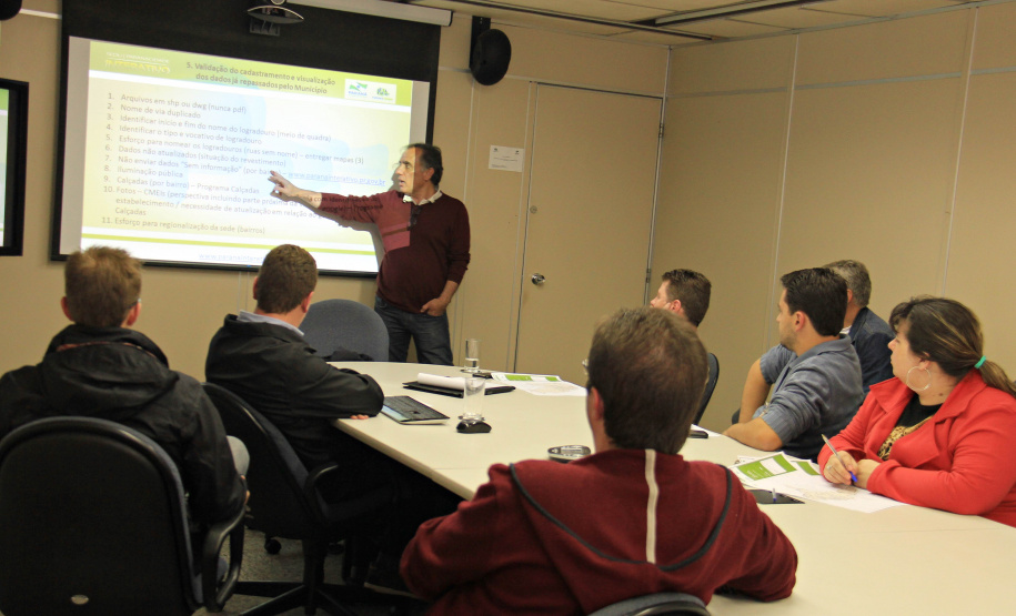 Participaram da reunião desta quinta-feira, em Curitiba, nove profissionais das áreas de cartografia, geoprocessamento, planejamento urbano, meio ambiente, obras e urbanismo dos seguintes municípios: Campo do Tenente, Colombo, Fazenda Rio Grande, Lapa, Mandirituba, Pinhais, Piraquara, Rio Branco do Sul e São José dos Pinhais. “Nós apresentamos uma ferramenta para aperfeiçoar o planejamento e a gestão urbana nos municípios. Trata-se de uma revolução no trabalho integrado do conjunto de técnicos. As prefeituras podem desenvolver um trabalho articulado que gera bons resultados à população”, enfatiza Meira.