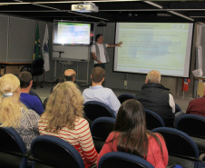 Nesta terça e quarta-feira, 07 e 08, técnicos de 24 municípios conheceram o Sistema SEDU/Paranacidade Interativo, que foi apresentado na 1a Reunião Técnica pelo coordenador de Projetos e economista, Jeronimo Meira e pelo engenheiro cartógrafo, Cristiano José Zaclikevicz, ambos do Serviço Social Autônomo Paranacidade. Estiveram na Reunião, durante os dois dias, 73 participantes das áreas de cartografia, geoprocessamento, planejamento urbano, obras e urbanismo. “É uma ferramenta que serve para fazer planejamento e gestão urbana. Fizemos uma apresentação detalhada, sobre as funcionalidades para integrá-los nesse processo por meio da alimentação dos dados, seja do governo estadual, federal ou do próprio município. A gente acredita que se trata de uma revolução no trabalho integrado desse conjunto de técnicos. As prefeituras podem desenvolver um trabalho articulado que gera muitos bons resultados à população”, disse Meira.