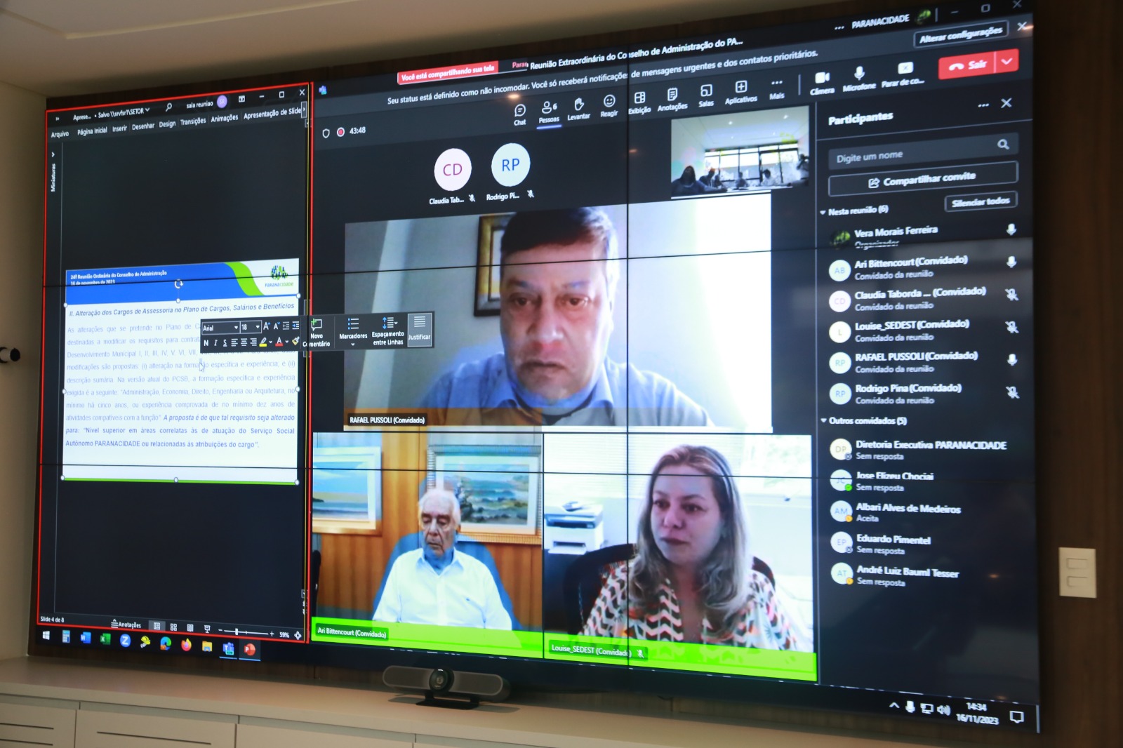 O secretário de Estado das Cidades do Paraná, Eduardo Pimentel, é empossado mais uma vez como superintendente do Serviço Social Autônomo Paranacidade, veiculado à Secretaria das Cidades – SECID -, atendendo a Lei, uma vez que estava em licença do cargo para assumir a Prefeitura de Curitiba, enquanto Rafael Greca atendia agenda no Exterior. O ato se deu na 24ª Reunião Extraordinária do Conselho de Administração do Paranacidade, na tarde desta quinta-feira, 16, de forma híbrida - virtual e presencial -, em Curitiba, presidida pelo secretário do Conselho, engenheiro do Instituto de Engenharia do Paraná, Rafael Pussoli, uma vez que o secretário da Fazenda do Paraná, René de Oliveira Garcia Júnior, se encontra em férias.