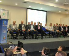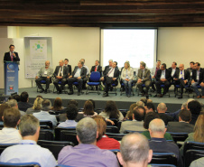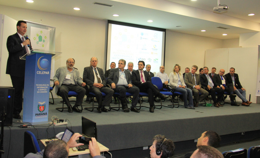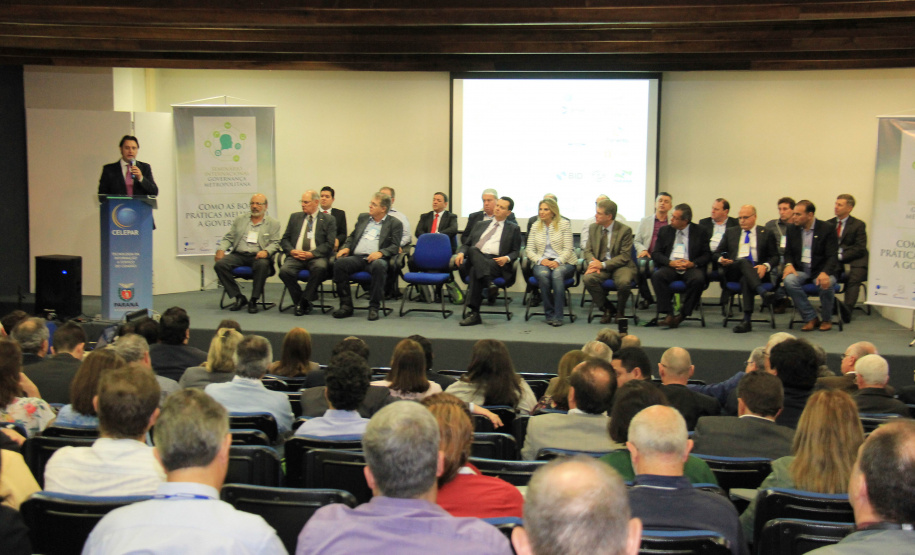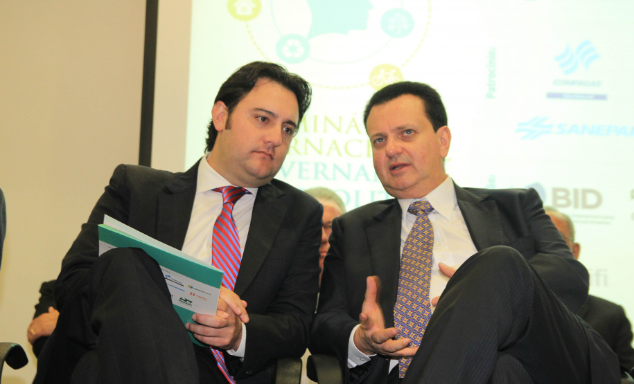 PRESENÇAS – Participaram da abertura do seminário o secretário-chefe da Casa Civil, Eduardo Sciarra; o presidente da Sanepar, Mounir Chaowiche; o coodenador da Região Metropolitana de Curitiba, Caco Almeida; o governador de Ourense, na Espanha, Manuel Baltar; o secretário das Cidades do Mato Grosso, Eduardo Chiletto; o secretário municipal de Assuntos Metropolitanos de Curitiba, Valfrido Prado; o prefeito de Contenda, Carlos Eugênio Stabach, que preside a Associação dos Municípios da Região Metropolitana de Curitiba (Assomec); e os prefeitos de Piraquara, Marcus Tesserolli; de Pinhais, Luiz Goulart; de Balsa Nova, Luiz Cláudio Costa; de Quatro Barras, Loreno Tolardo; de Rio Negro, Milton Paizani; de Umuarama, Moacir Silva; e de Cascavel, Edgar Bueno; além do deputado estadual Guto Silva.