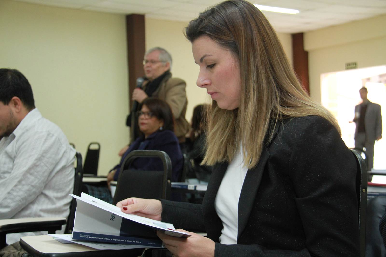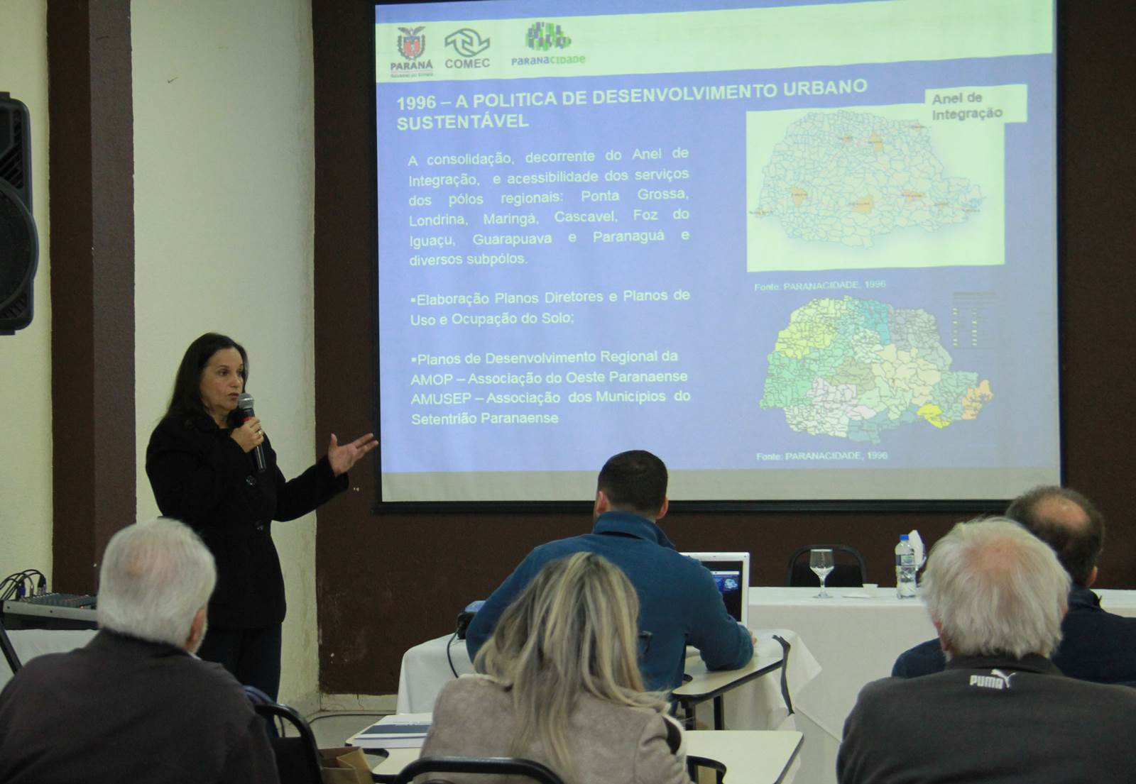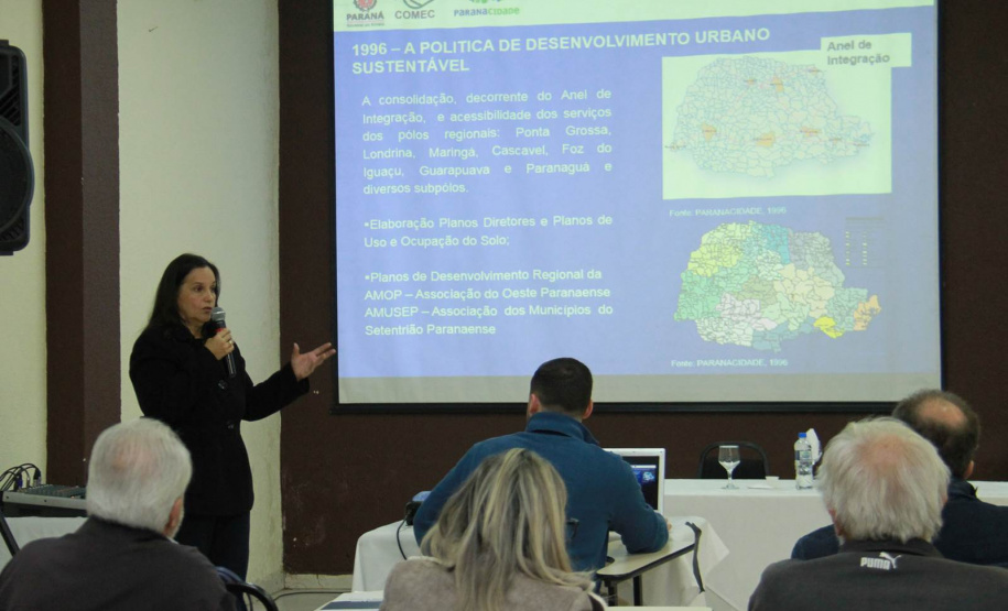 Dentro desta perspectiva, foi fundamental a explanação da arquiteta e urbanista Maria Inês Terbeck, coordenadora técnica da SEDU. Ela mostrou o panorama geral das atividades já desempenhadas e em implementação pela secretaria, além apresentar o organograma e a função de cada item. Todos os programas existentes, o sistema de financiamento aos municípios, a política de desenvolvimento urbano e os planos diretores fizeram parte da exposição dela.