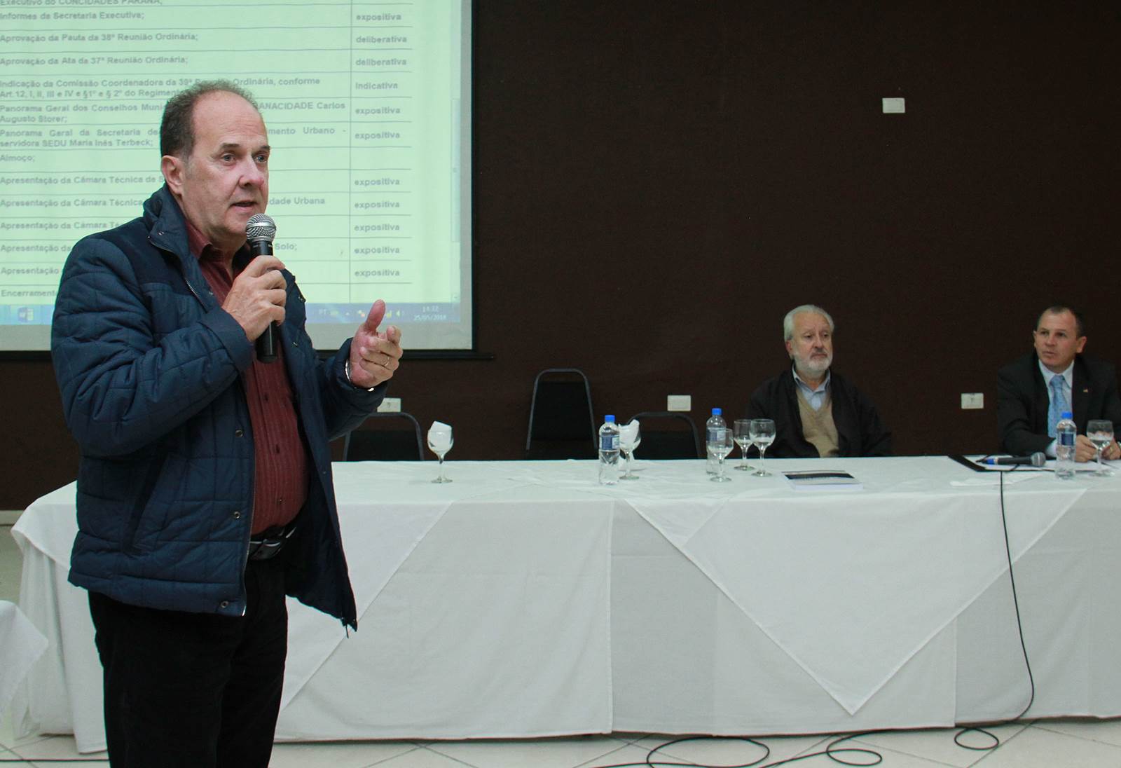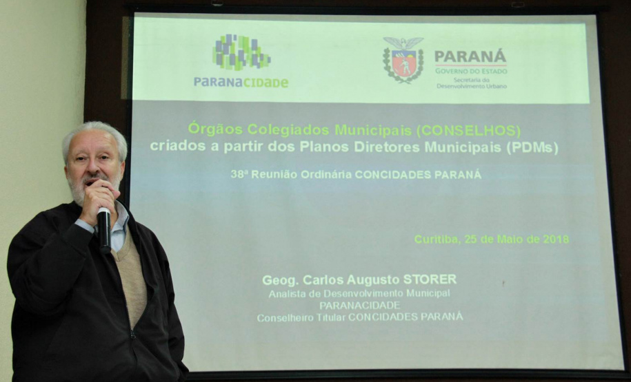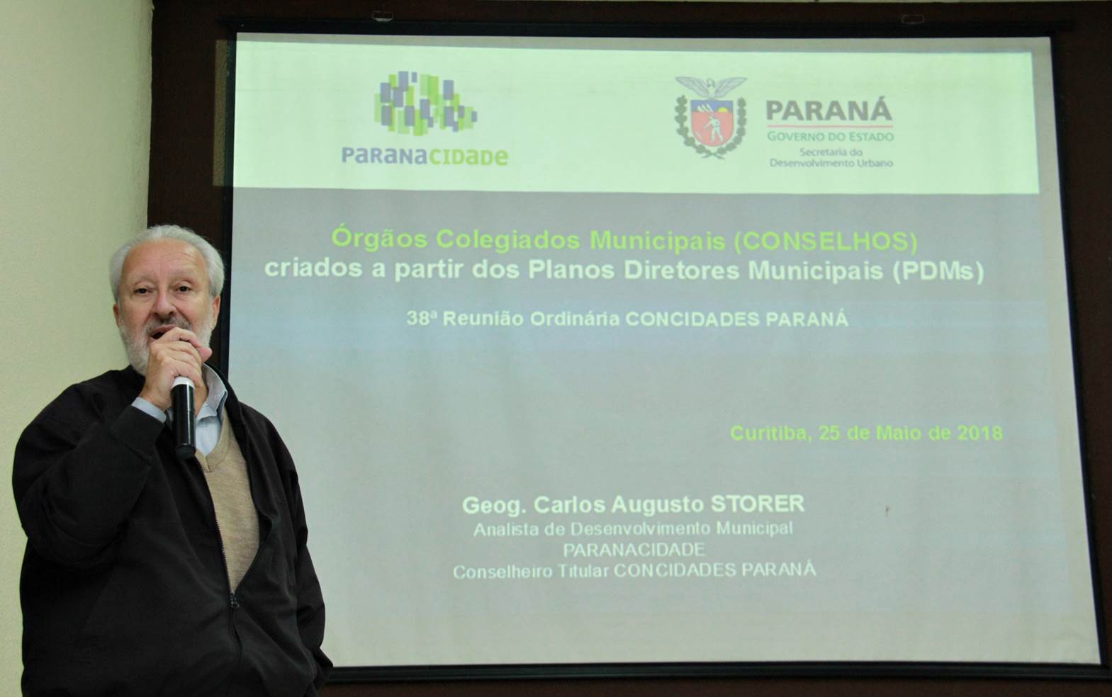 No encontro de hoje, presidido pelo secretário executivo interino do ConCidades/PR, Gilmário Ferraz, ainda falaram o geógrafo Carlos Storer que, entre outros assuntos, mostrou como se situa o Plano Diretor Municipal na Constituição Federal e também como podem ser criados os Conselhos Municipais, e também os representantes das Câmaras Técnicas de Planejamento e Gestão de Solo; Habitação; Saneamento e Trânsito, Transporte e Mobilidade Urbana. Eles apresentaram os resultados de suas reuniões, assim como os Grupos de Trabalho.