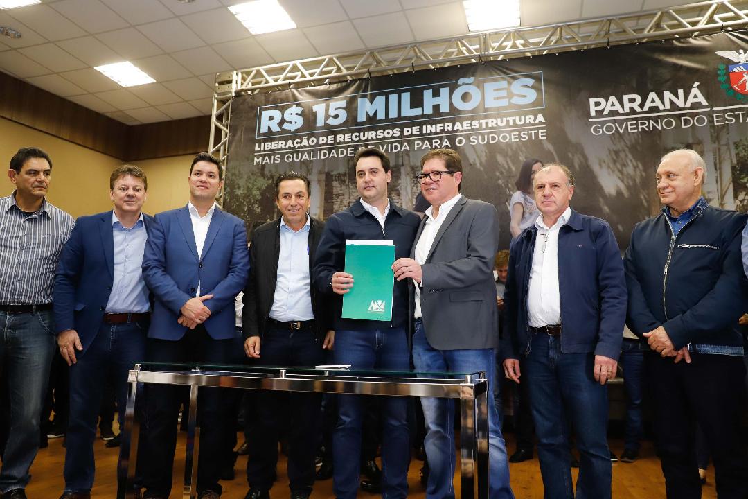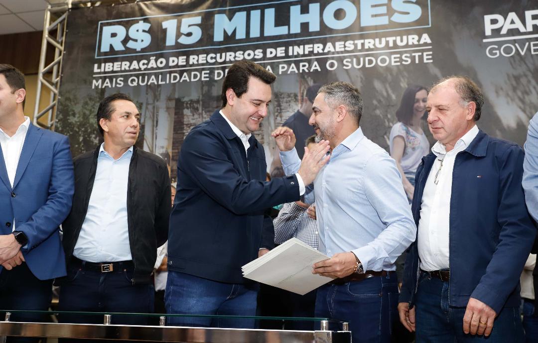 Obras de infraestrutura, melhorias em escolas, reformas e construção de Postos de Saúde estão no pacote de investimentos que o Governo do Estado fará em 24 cidades da Região Sudoeste. O governador Carlos Massa Ratinho Junior se reuniu nesta quinta-feira, 8, com prefeitos na sede da Associação dos Municípios do Sudoeste do Paraná (AMSOP), em Francisco Beltrão, e assinou as ordens de serviço e homologação das licitações para dar início às obras e ações. Muitas delas oriundas da Secretaria do Desenvolvimento Urbano e de Obras Públicas (SEDU).