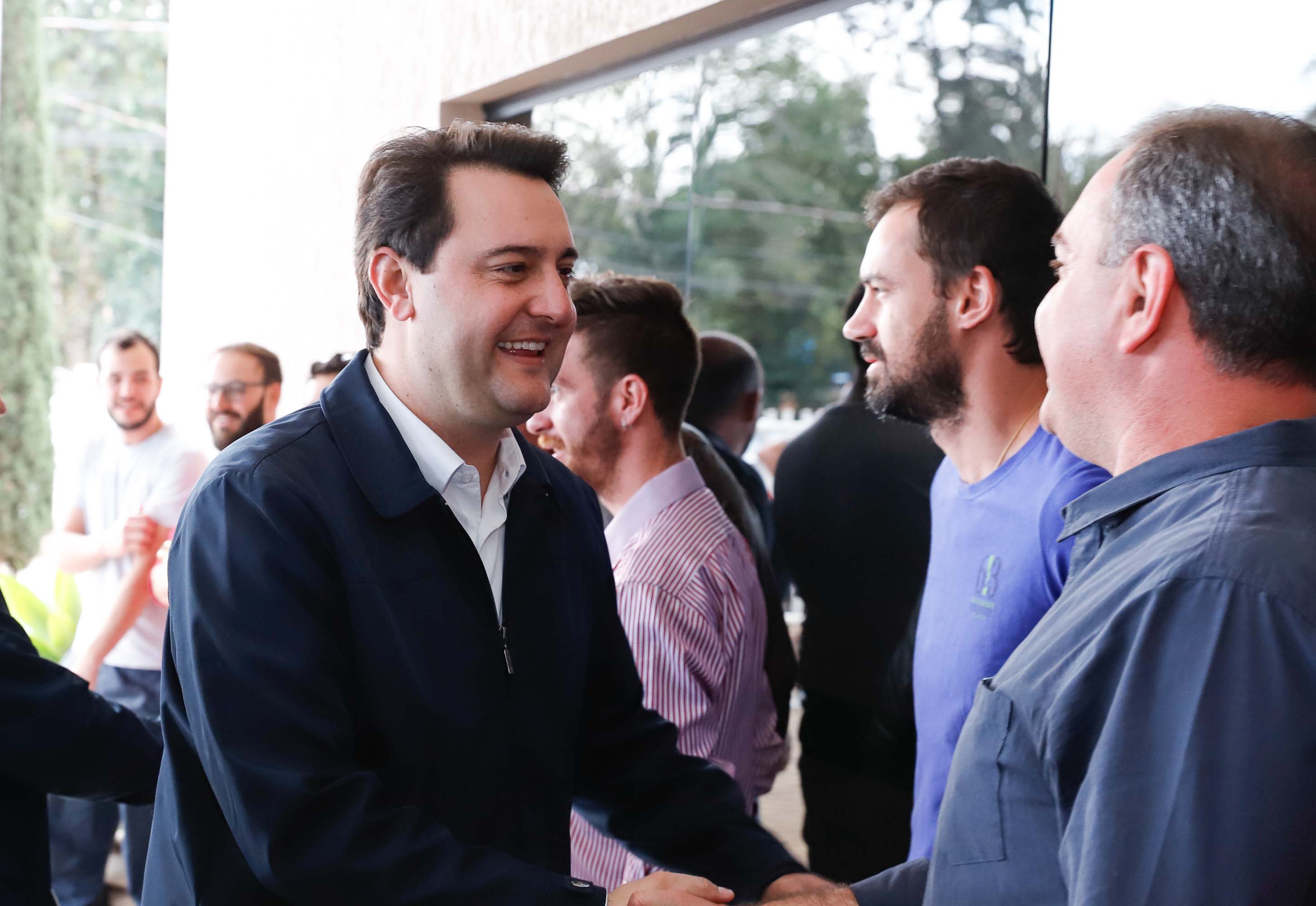 PREFEITOS – O presidente da Associação dos Municípios do Sudoeste do Paraná (AMSOP) e prefeito de Saudades do Iguaçu, Mauro Cenci, reforçou a importância da parceria com o Governo do Estado para o desenvolvimento da região, que abriga 42 municípios e 700 mil pessoas. “Há um bom diálogo e sensibilidade por parte do governo para melhorar a infraestrutura da Região. Todo o Sudoeste está muito feliz”, ressaltou.