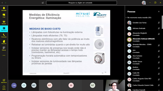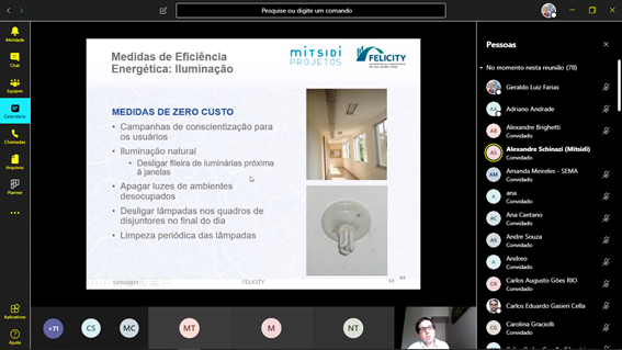 O conteúdo apresentado incluiu casos de sucesso em execução pelas Prefeituras de Porto Alegre e do Rio de Janeiro; conceitos como a necessidade de medidas educacionais, além das trocas de equipamentos, para conseguir o comprometimento dos usuários dos Espaços Públicos sobre o uso consciente da energia. A gestão de energia também pode ser defendida pelo ponto de vista da gestão financeira dos Municípios, uma vez que suas ações podem trazer economia e a consequente destinação de recursos para outras Políticas Públicas.