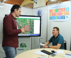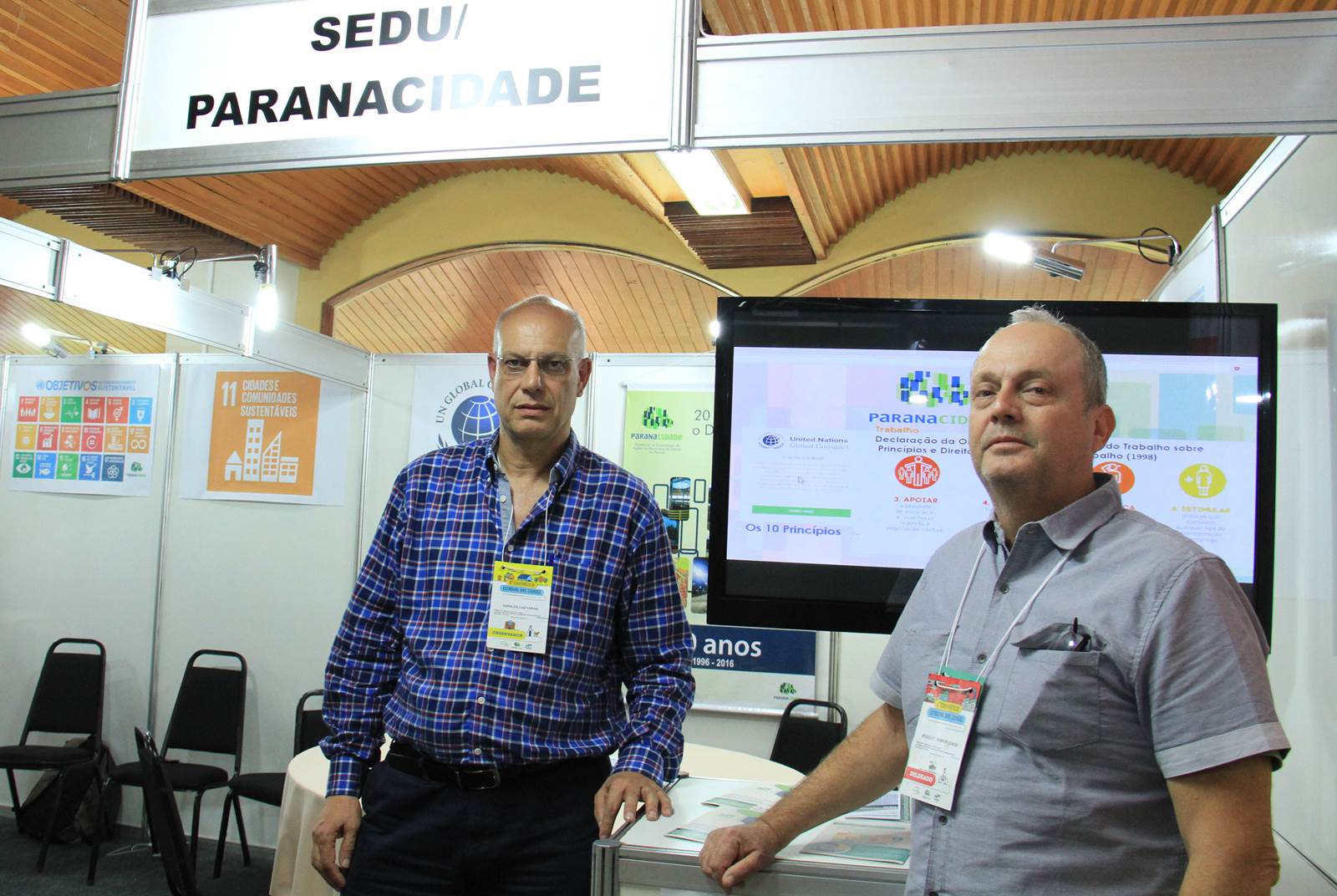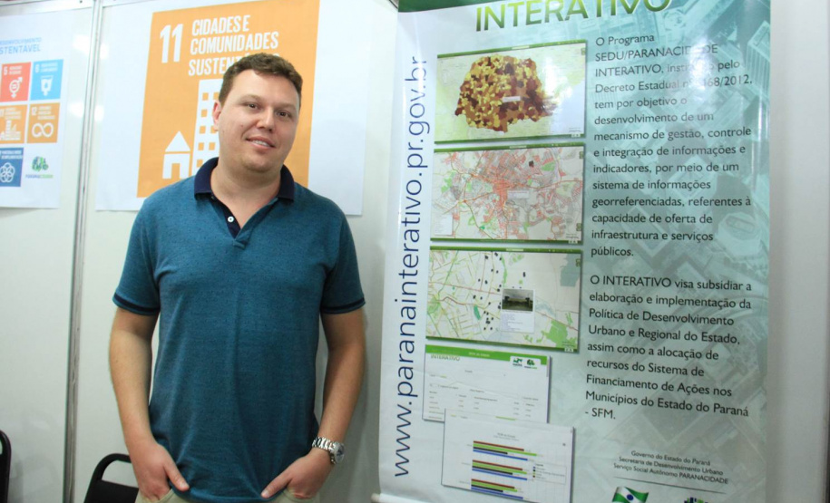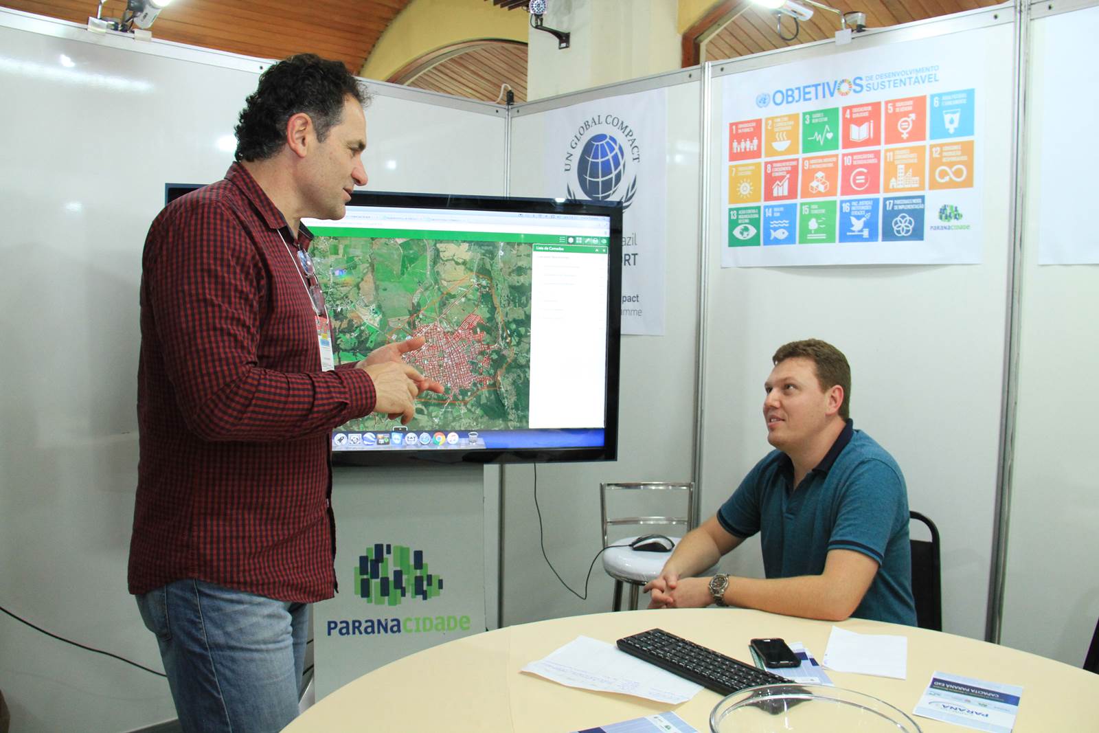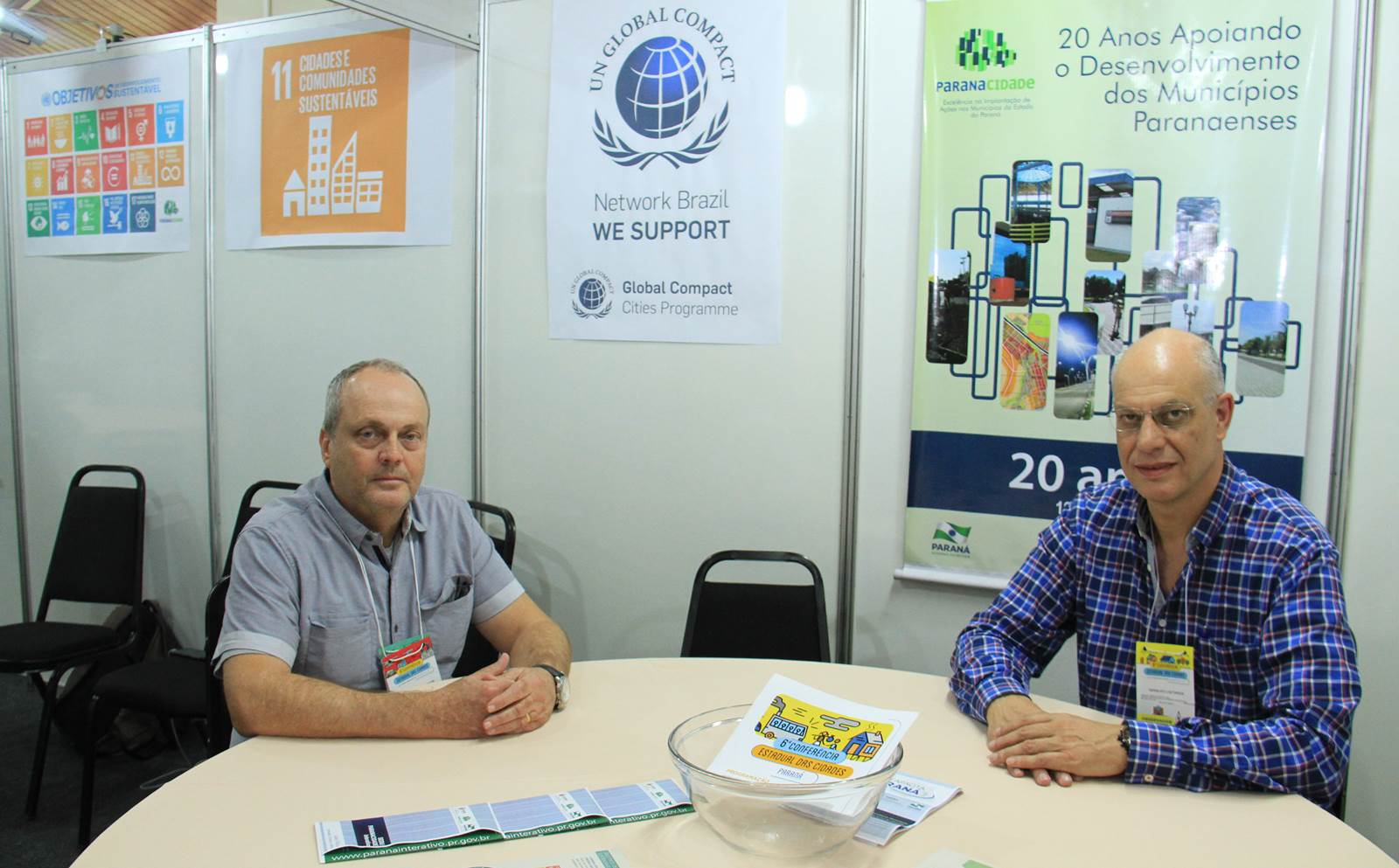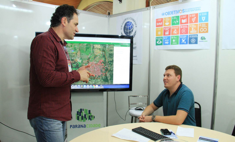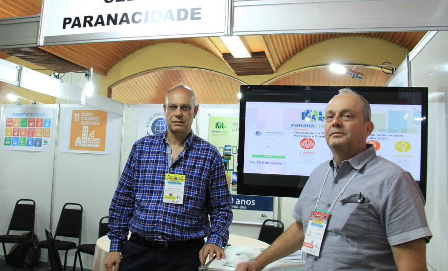 Na área dos Objetivos de Desenvolvimento Sustentável, que é a ação que o Paranacidade desenvolve para atender a Agenda 2030 da ONU, os representantes, analistas de Desenvolvimento Municipal de Curitiba e do escritório de Londrina, o engenheiro florestal Geraldo Farias e o administrador Rodolfo Purpur Junior, respectivamente, explicavam aos interessados sobre este movimento, junto com o Pacto Global e o Programa Cidades, os quais o Paranacidade também aderiu.