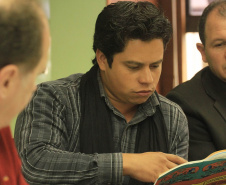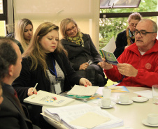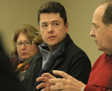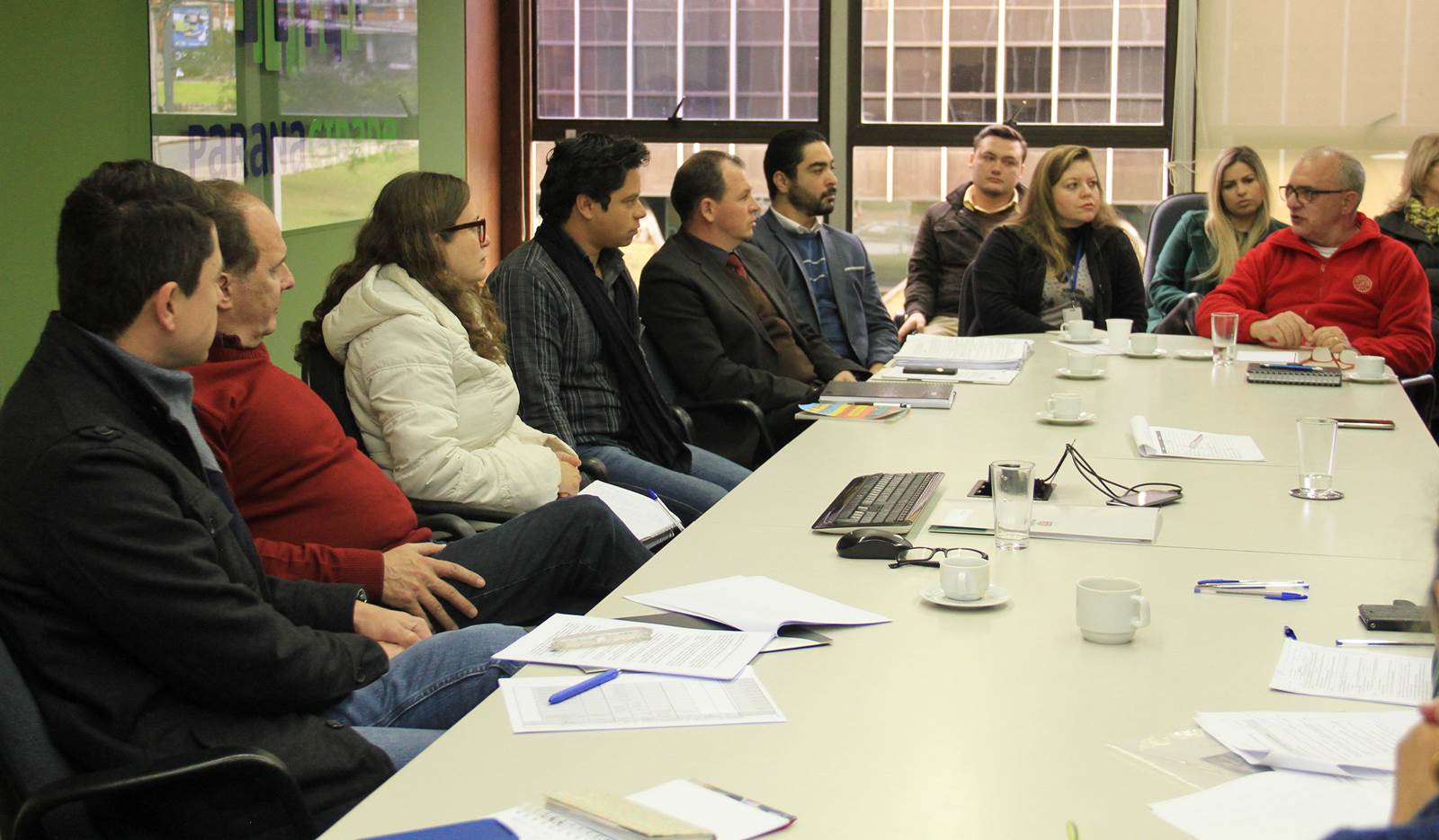Na reunião desta quarta-feira, estavam presentes Gustavo Taniguchi, Luciane Taniguchi, Rubia Nascimento, Evelin Pallú, Mariano de Mattos Macedo, João Marcos Leiria, todos da URBTEC; Olga Lúcia Firkowski, Izabella Swiercznski, Nilson Lopes Andrade, Marli Babinski, Ailton Lima, da Comissão de Metodologia e Sistematização; Antonio Weinhardt Junior, Alessandra Arruda Nunes, Bruno Palma Aguiar, Gilmário da Silveira, todos da coordenação executiva do ConCidades/PR; Fulvio Vilas Boas, Augusto dos Santos Pereira, Silvia Angélica de Oliveira, da Celepar; Leandro Moura e Alexsandra Bittencourt, do Paranacidade.