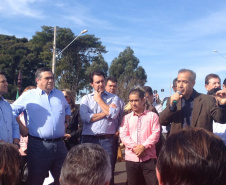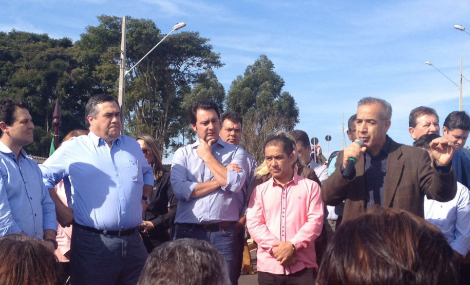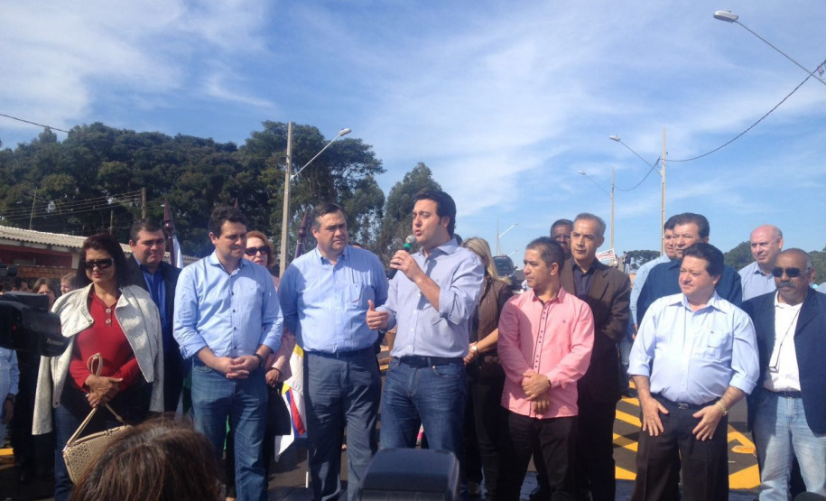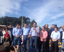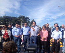 Vidas mais preservadas e trânsito mais desafogado em Apucarana, na Região do Norte Central do Paraná, com a inauguração, na manhã desta sexta-feira, 17, do Viaduto do Conjunto Papa João Paulo I, na altura do rio Jacaré, que liga o núcleo habitacional ao Parque Industrial da Zona Oeste. A obra faz a transposição da via férrea e era uma demanda de mais de 36 anos da população que viu inúmeros acidentes fatais naquele local. Sensibilizado, o então deputado federal, e hoje secretário do Desenvolvimento Urbano (SEDU), Ratinho Junior, direcionou uma emenda ao município, no valor de quase R$ 500 mil, para somar aos R$ 902 mil investidos pelo prefeito Beto Preto na execução do viaduto. “Estou muito feliz em ter contribuído para transformar em realidade o sonho de mais de três décadas da população”, comemorou Ratinho Junior.