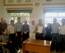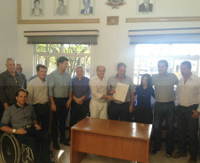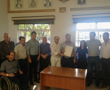 Às 11 horas Ratinho Junior já estava, com o assessor especial da SEDU, Lúcio Tasso, na Prefeitura de Jandaia do Sul, localizada na Praça do Café, 22, no centro daquela cidade. O secretário do Desenvolvimento Urbano entregou ao prefeito Benedito Pupio dois editais, para licitação, cuja soma chega a R$ 202.146,24. Deste valor, há uma contrapartida municipal de R$ 10.107,31, mas o restante é pela Transferência Voluntária da SEDU, ou seja, sem necessidade de devolução aos cofres do Estado. Os recursos serão investidos em duas obras. Uma, será em 5.400 m2 de recape asfáltico na pista paralela à Rodovia BR-376 e à Avenida Dr. Tancredo de Almeida Neves. A outra obra será a reforma do Salão Municipal de Jandaia do Sul, em uma área total de 484,80 m2, na Rua Marumbi.