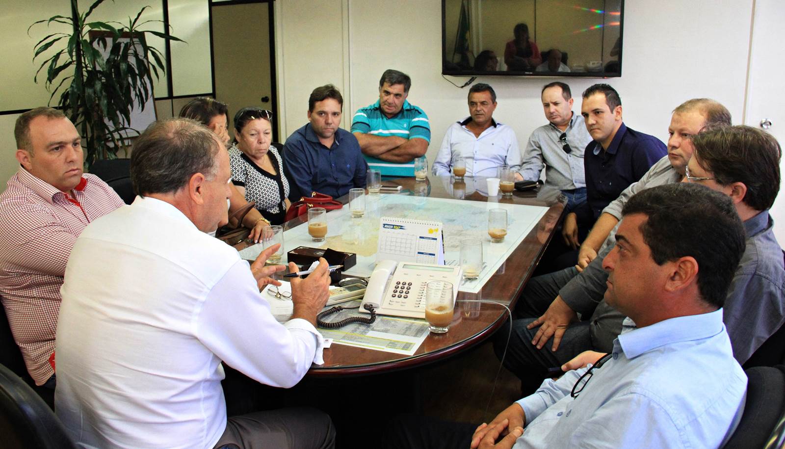 COMITIVA - Carvalho estava acompanhado do seu secretário de governo, Deyvitt Leal, mais oito vereadores, entre eles o presidente da Câmara Municipal, Antônio Carlos, além de Fábio Fadel, André S., Oscar Becão, Cesar de Melo, Antônio Carlos, Vera Vila B, e Verinha Siqueira, mais o empresário Flávio Faryala. O grupo pediu o apoio de João Carlos Ortega para dar início ao processo de projetos necessários à população de Ibaiti. “Nós fomos autorizados pelo governador Beto Richa a investir R$ 2,5 milhões no município, agora precisamos saber qual é o caminho e como a gente deve fazer”, disse o prefeito,